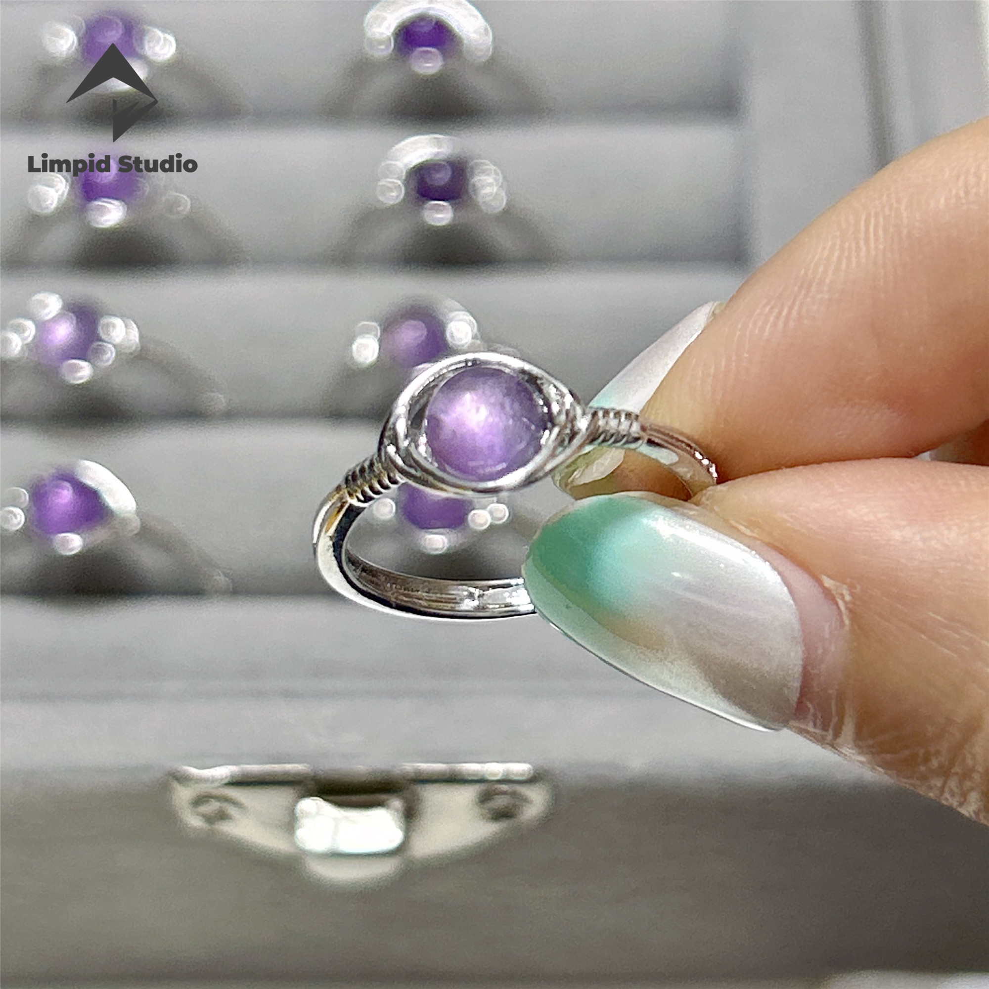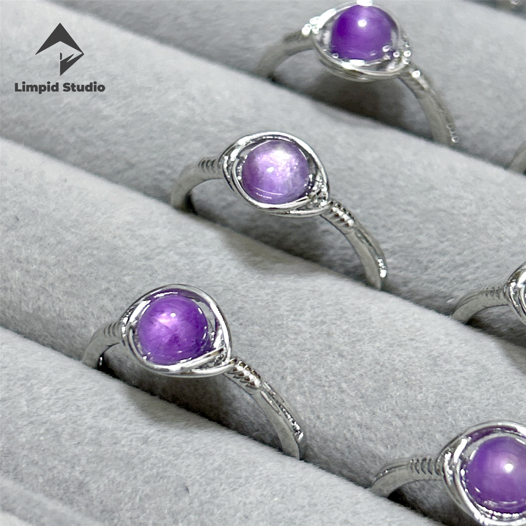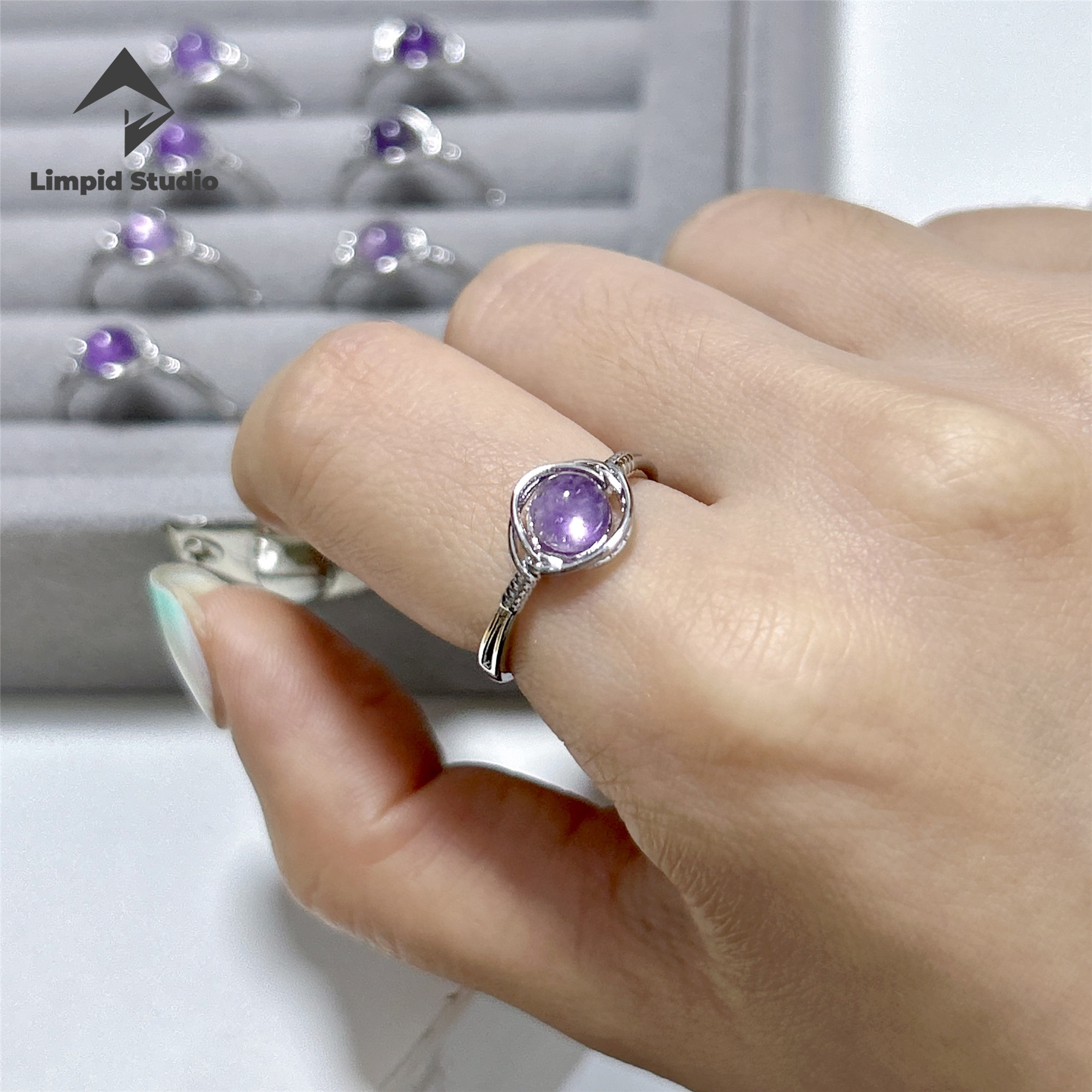 淘宝LIMPID天然紫水晶简约镶嵌戒指开口可调节薰衣草紫福利款气质高级
