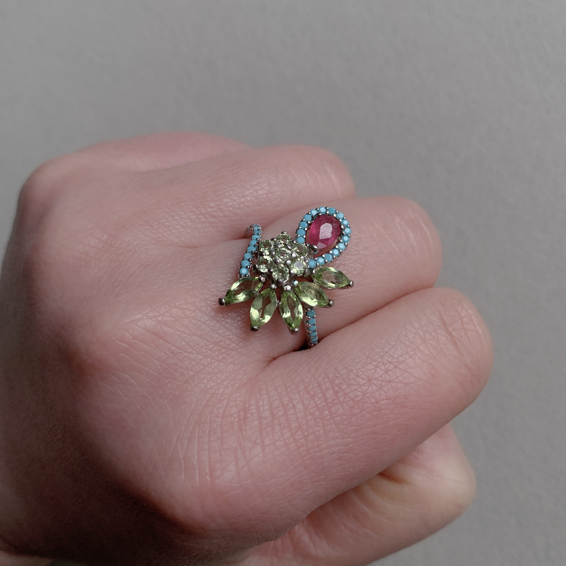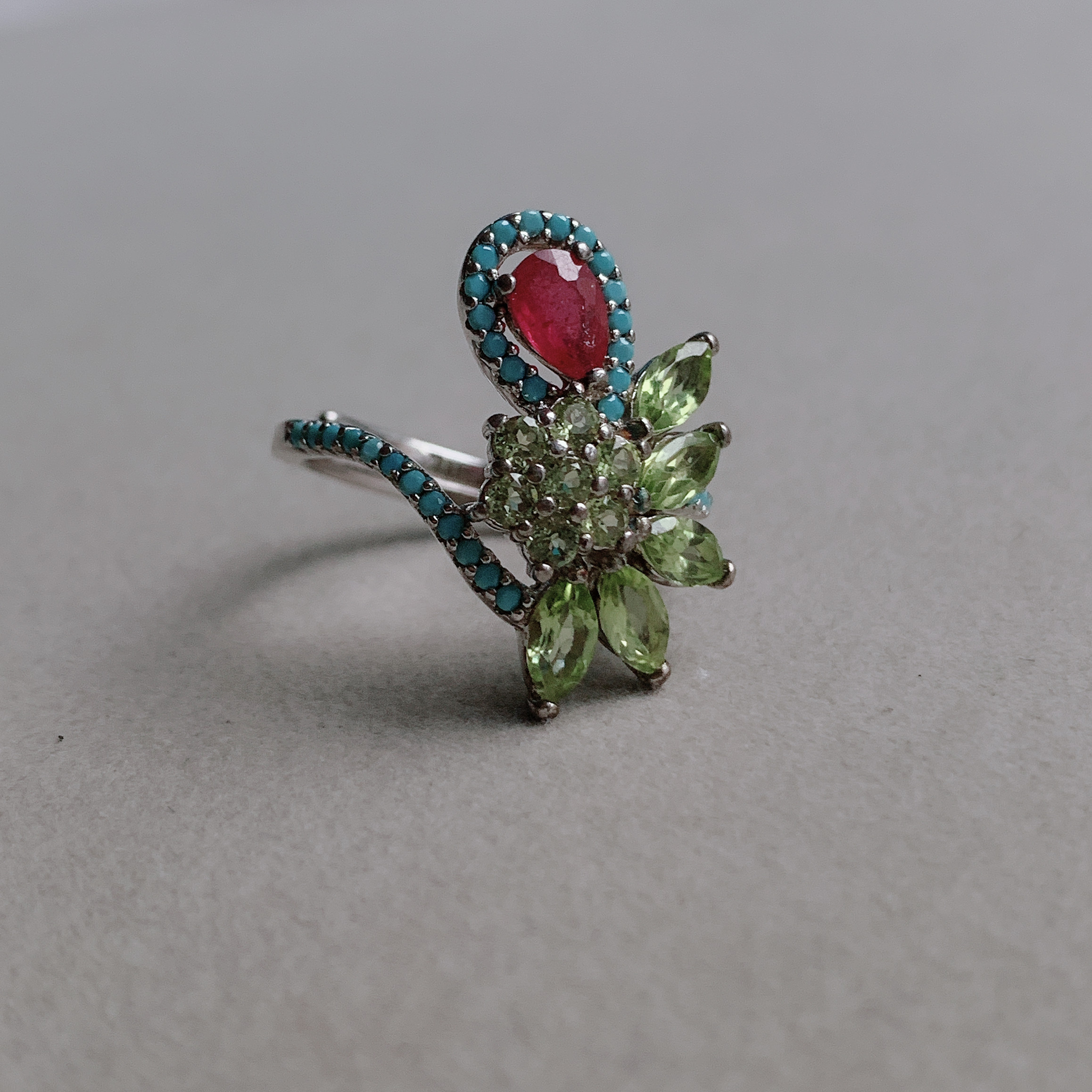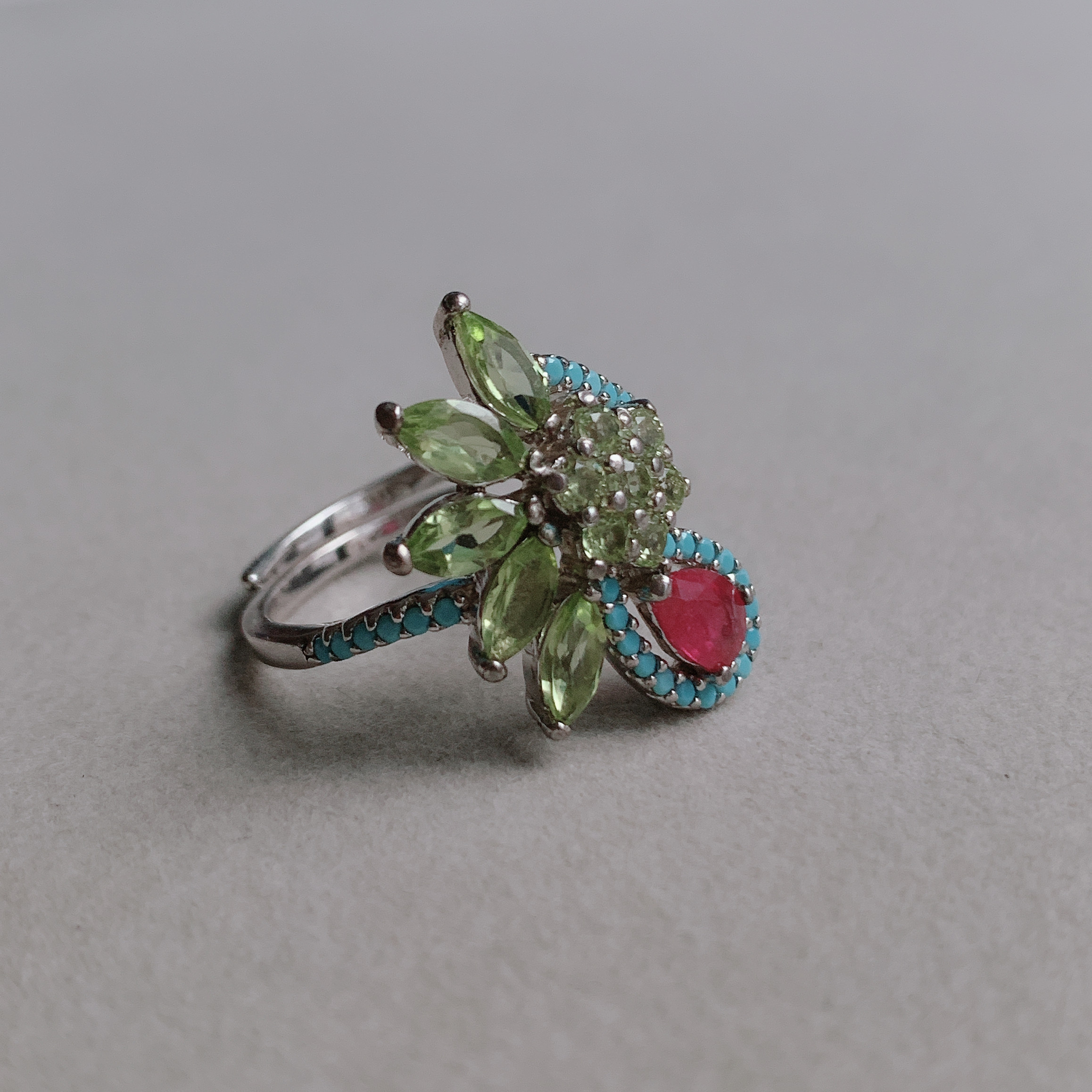 淘宝天然红宝石橄榄石925银镶嵌尼泊尔戒指女款时尚个性简约百搭指环