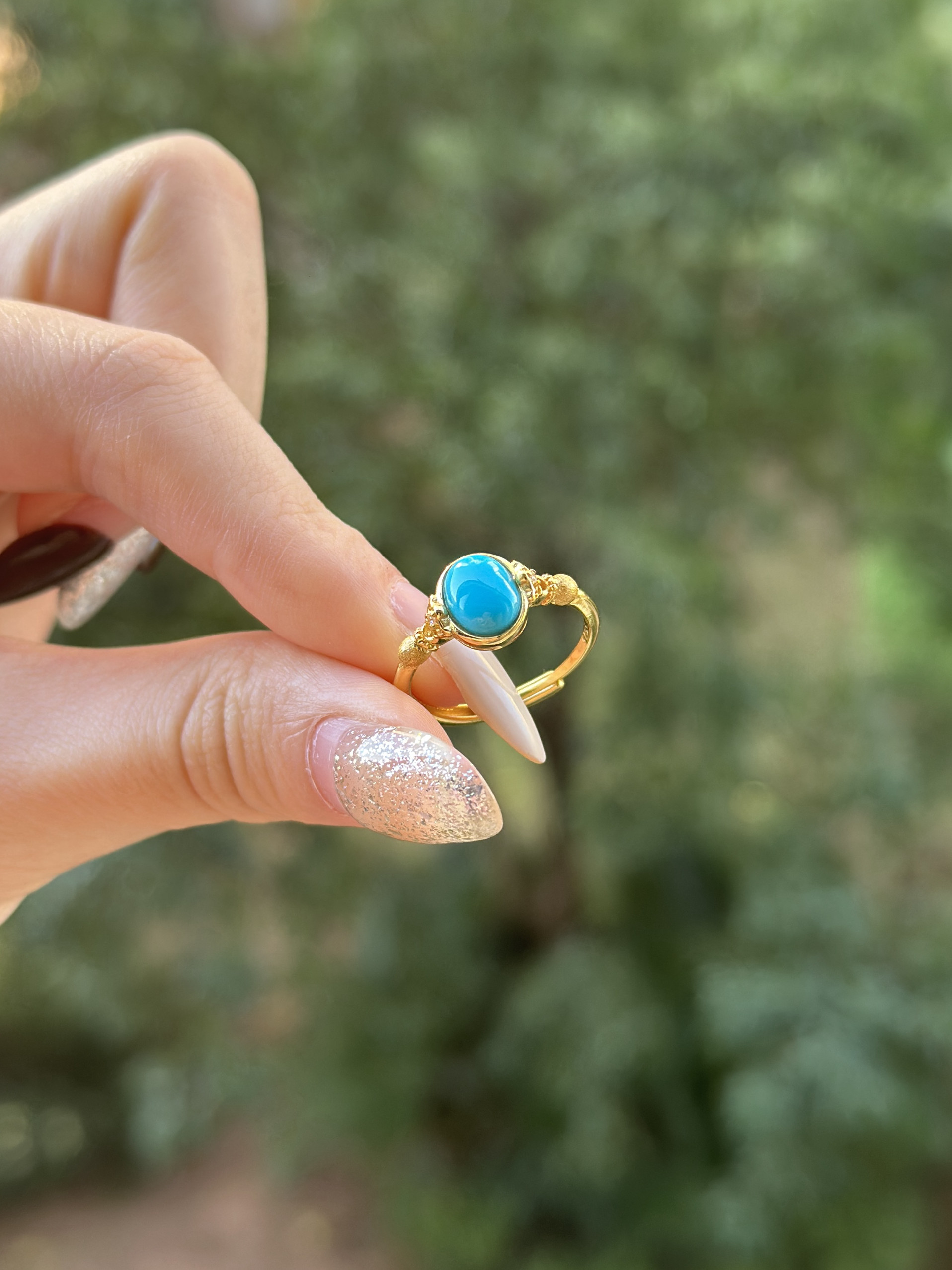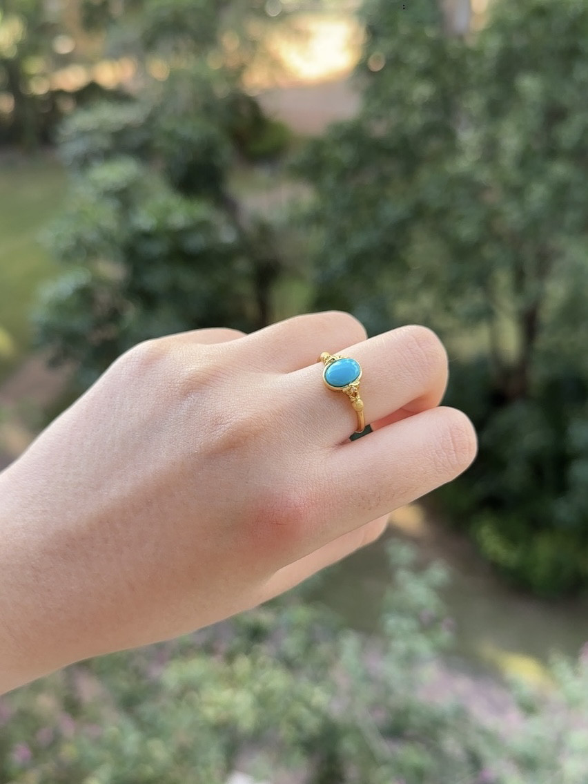 淘龙丰绿松轩珠宝正品天然绿松石美松小米珠戒指银镀18K金轻奢指环