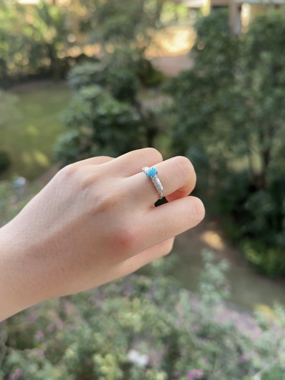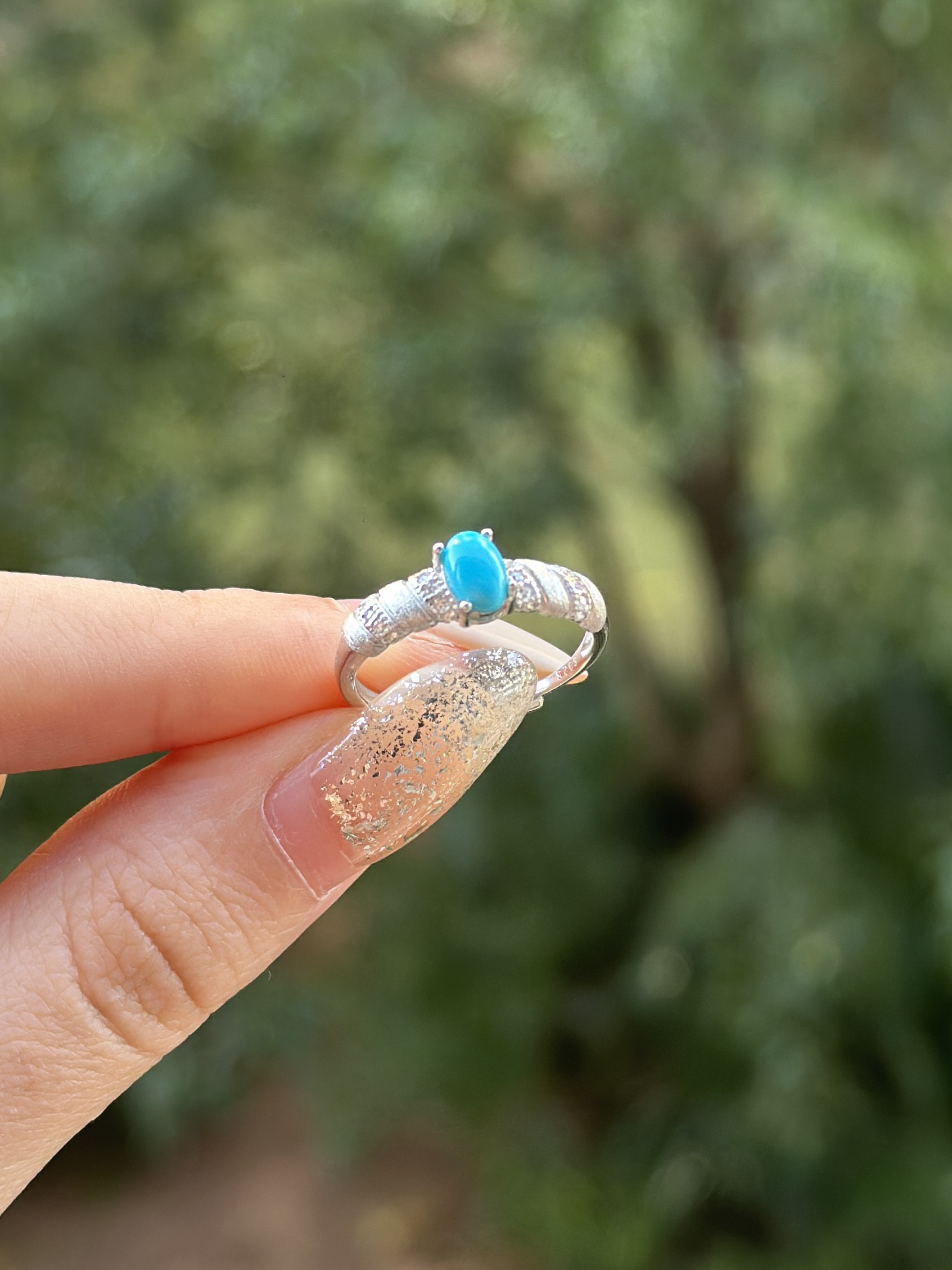 淘宝天然美国原矿绿松石S925纯银戒指 莫桑石镶嵌 开口可调节