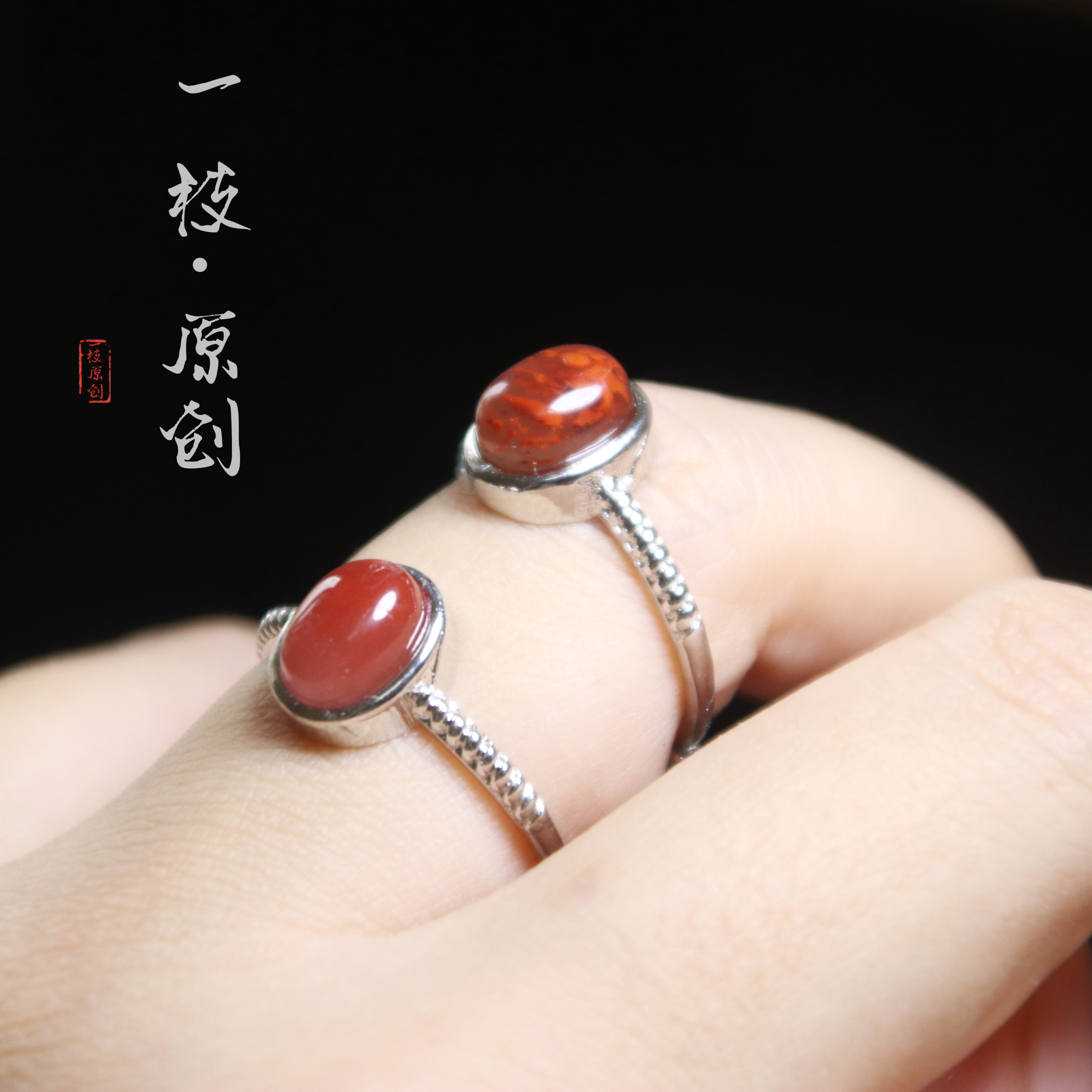 淘宝天然飘花南红玛瑙可调节铜镶戒指女款复古民族风新中式百搭小众