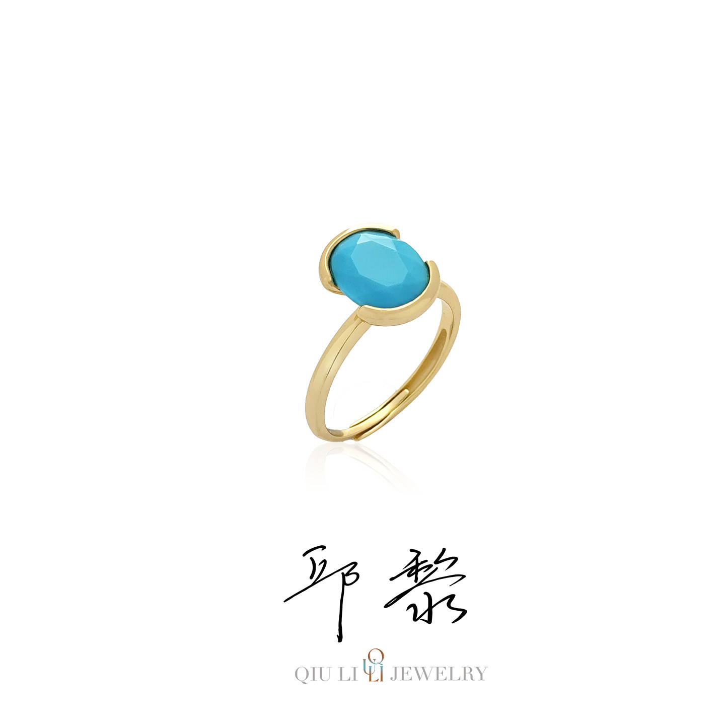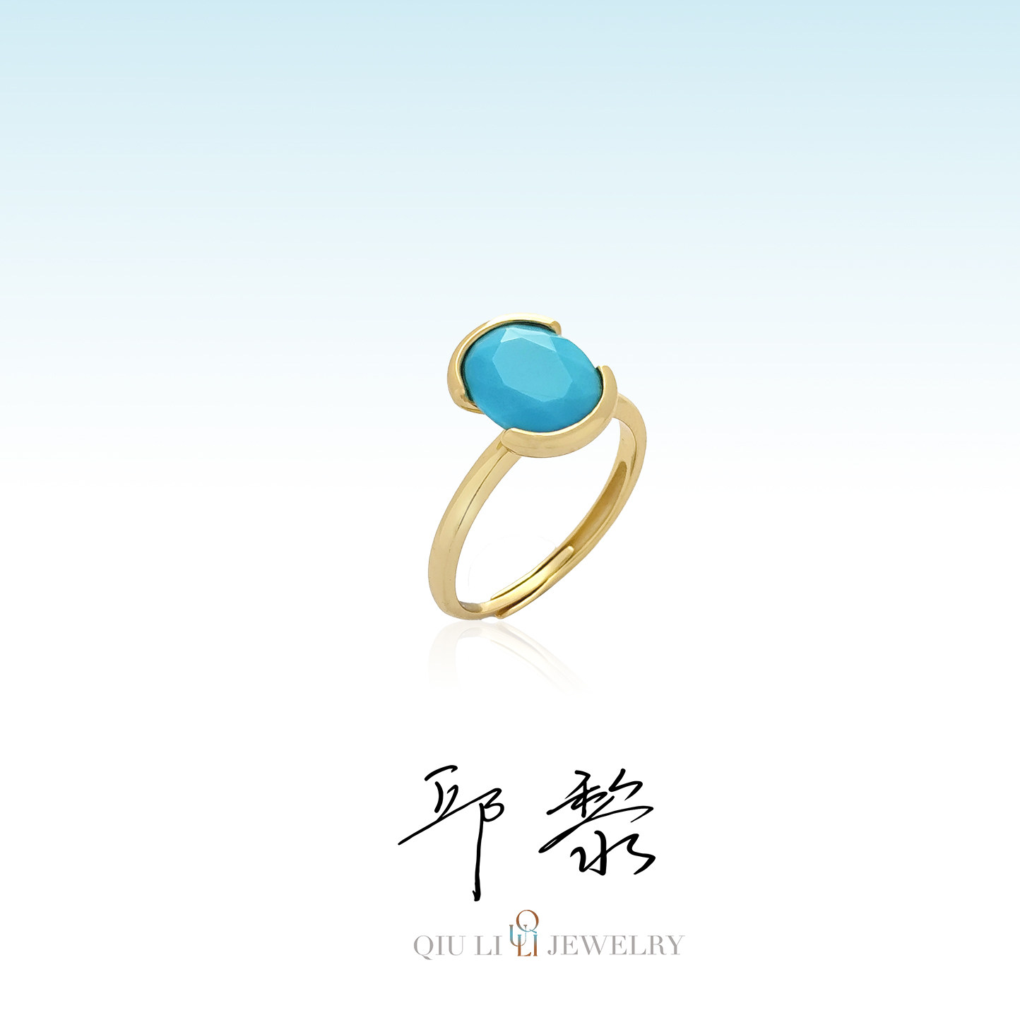 龙丰绿松轩珠宝正品天然绿松石美松小米珠戒指银镀18K金轻奢指环