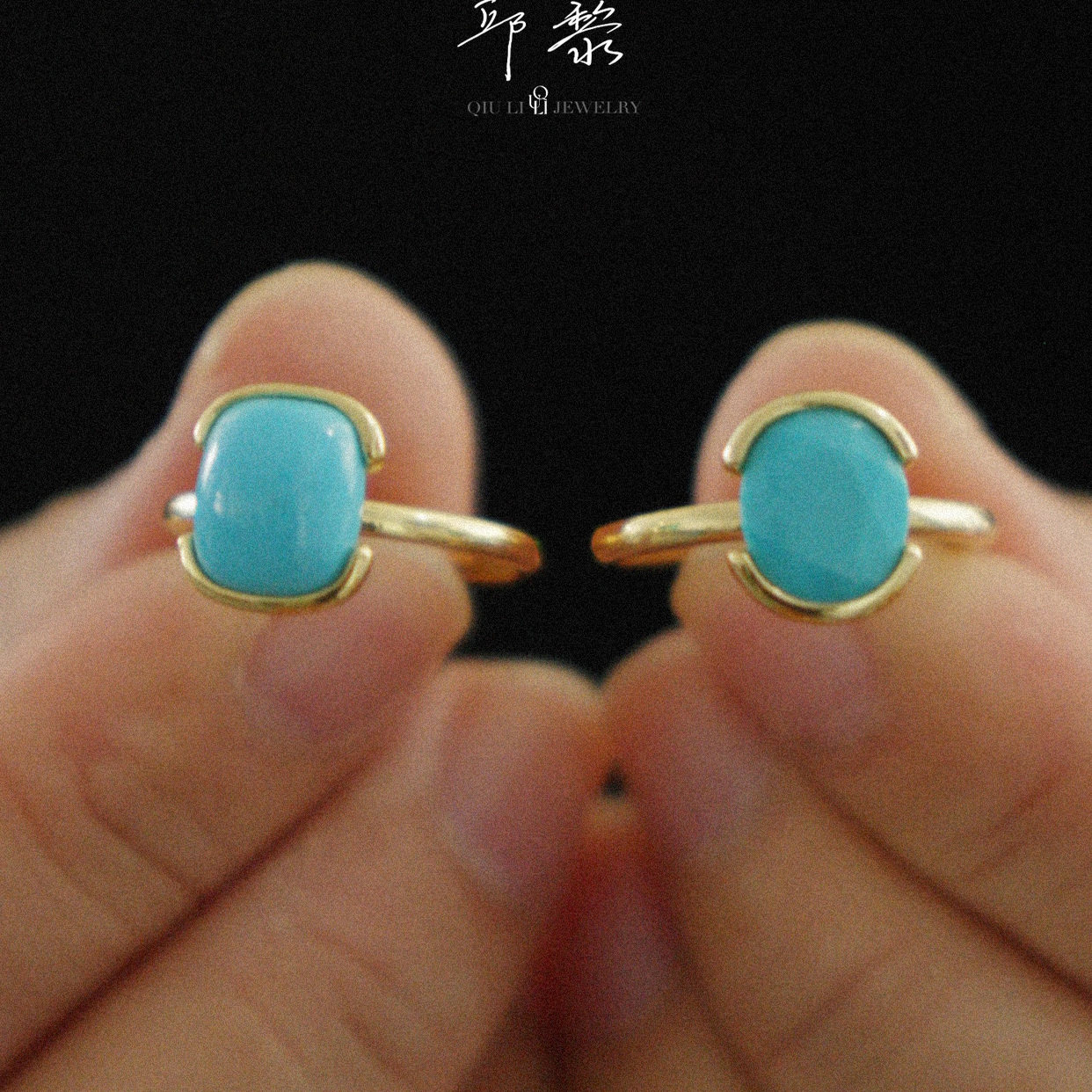 淘宝邱黎 ·「美松」925银时尚半包方枕形刻面款微沁绿松石戒指1h8181
