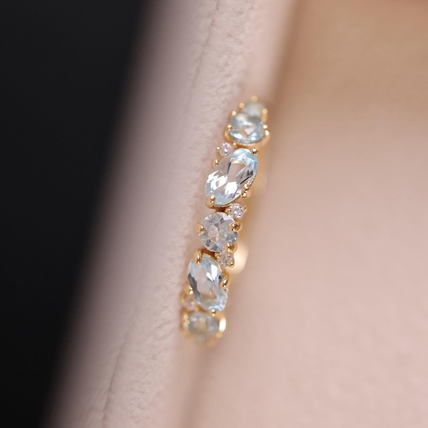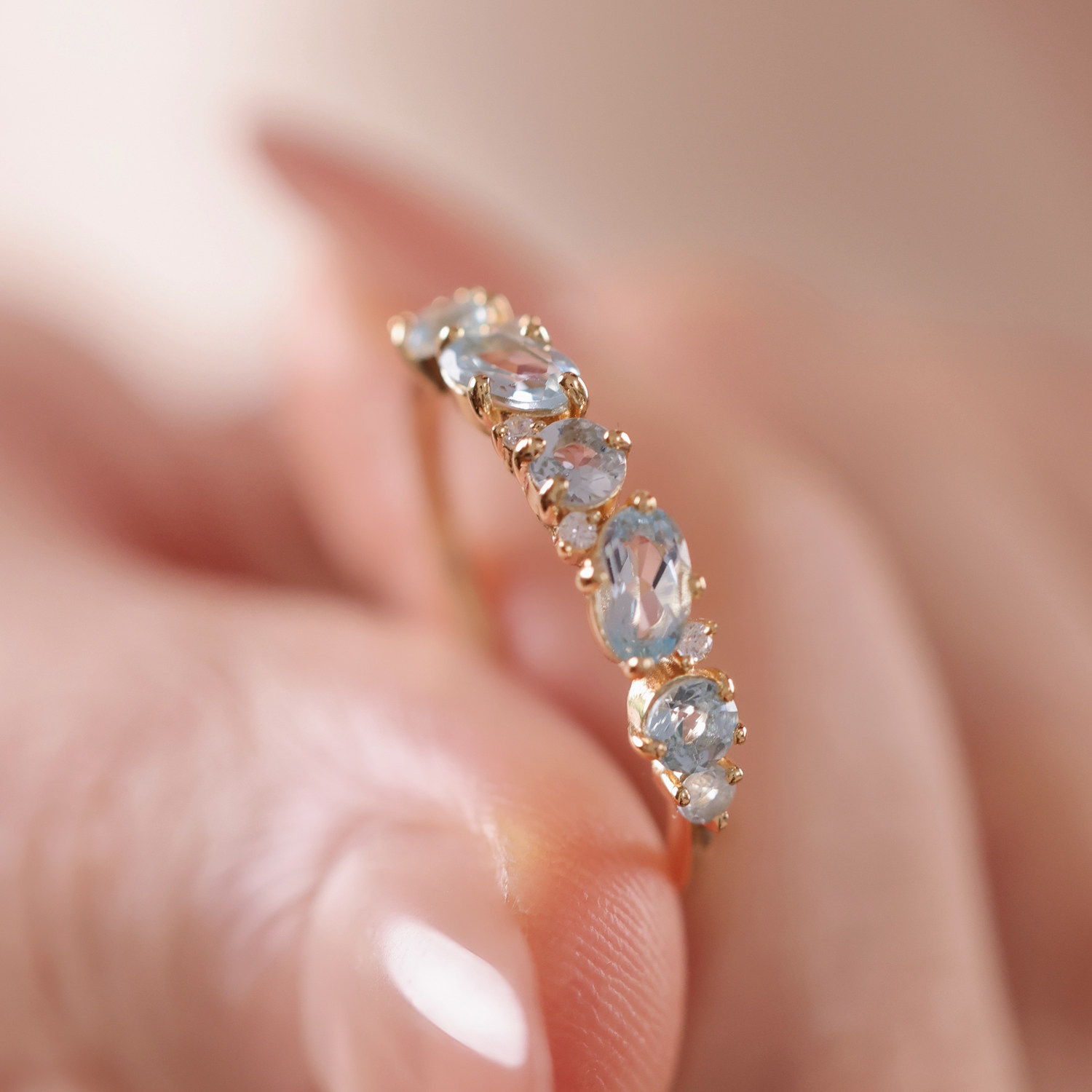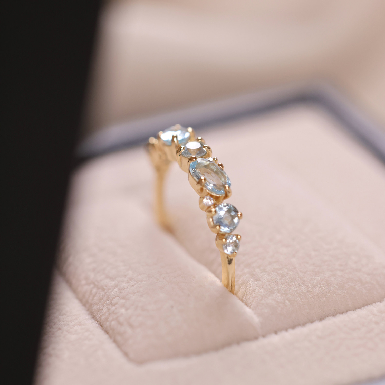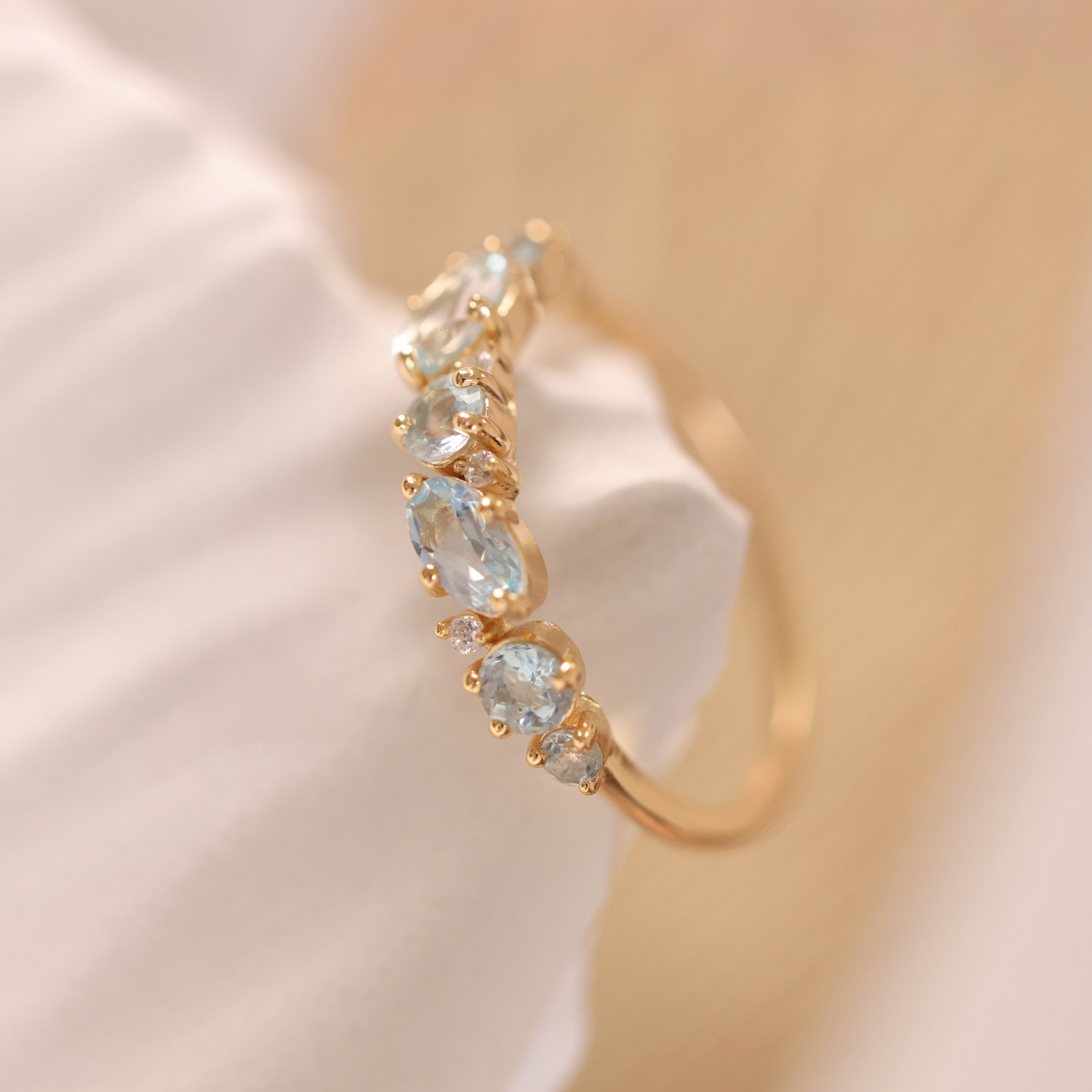 淘宝珞笙《窗外的海》天空蓝托帕石彩宝优雅轻奢银镀金戒指礼物送闺蜜