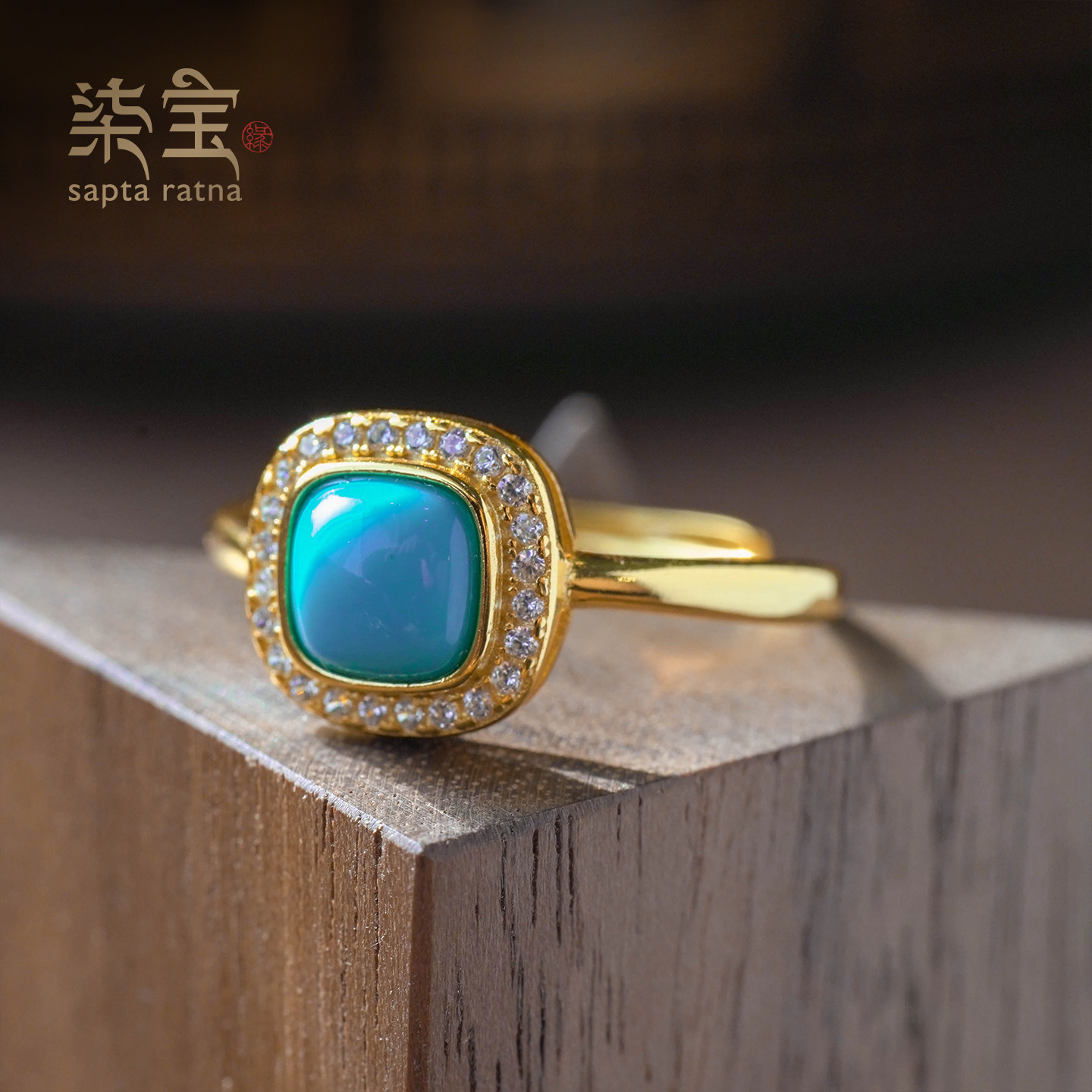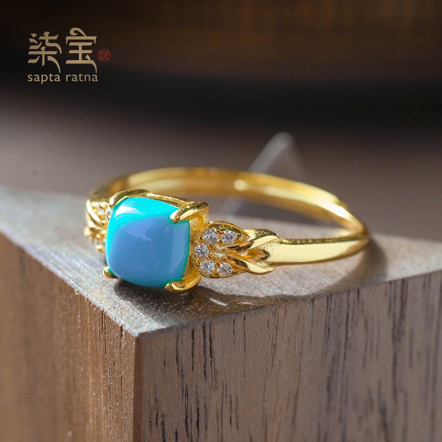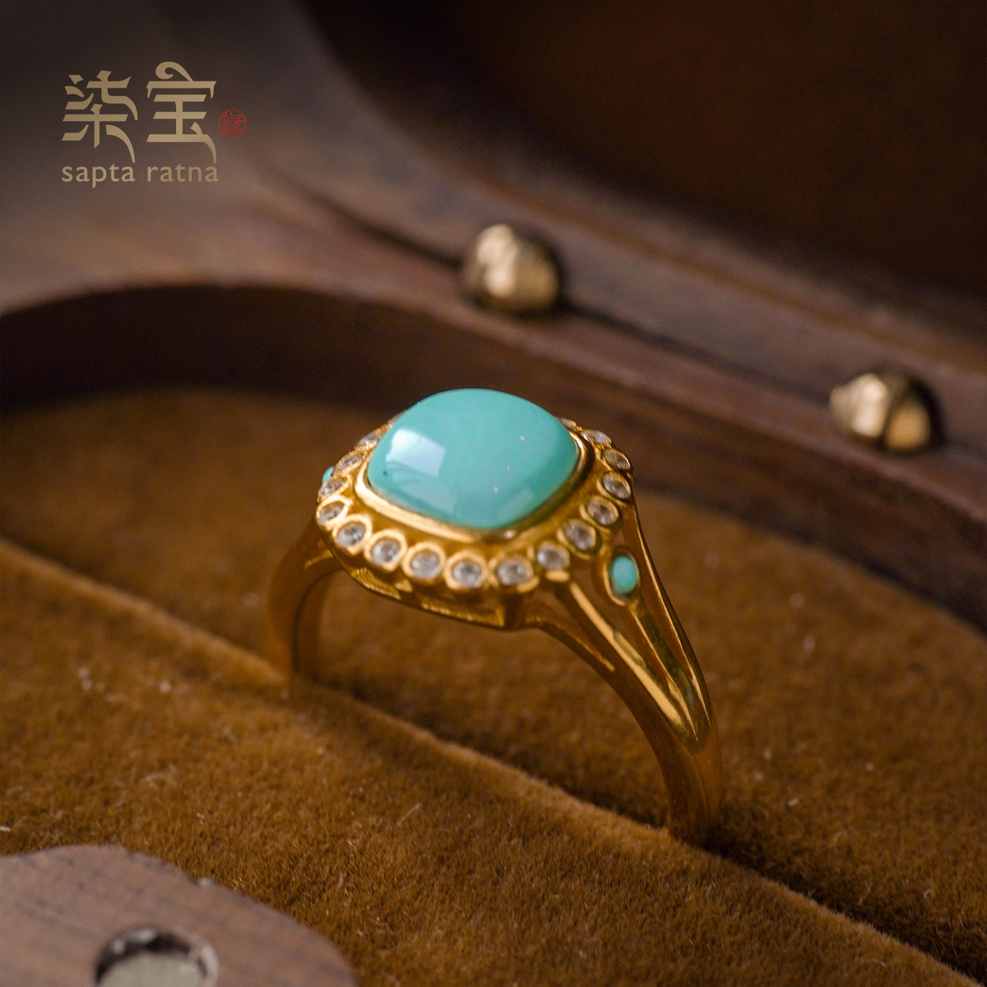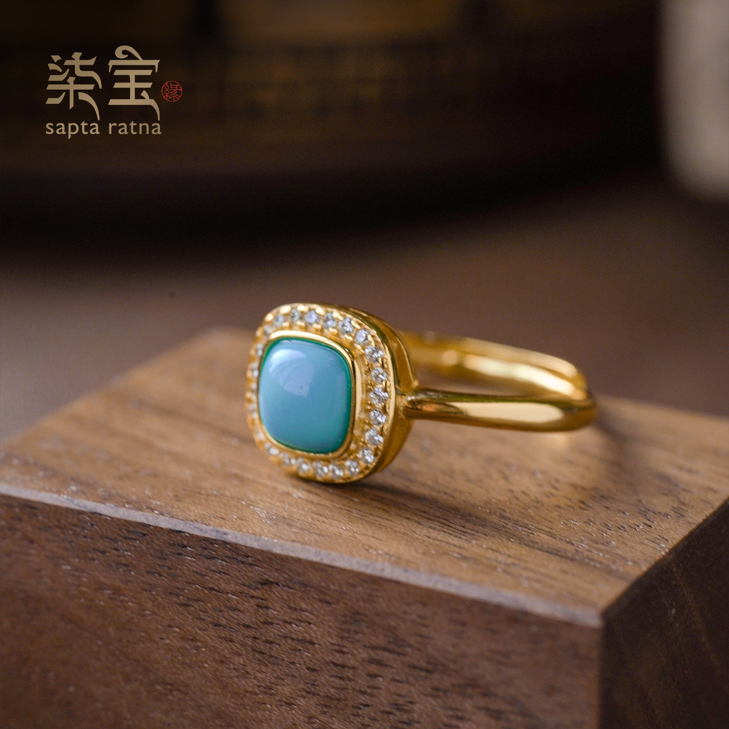 淘龙丰绿松轩S925银镀18k金正品天然绿松石方形简约百搭款女款戒指