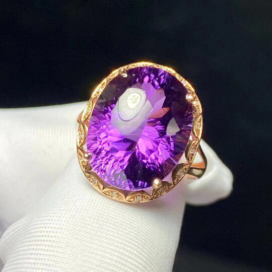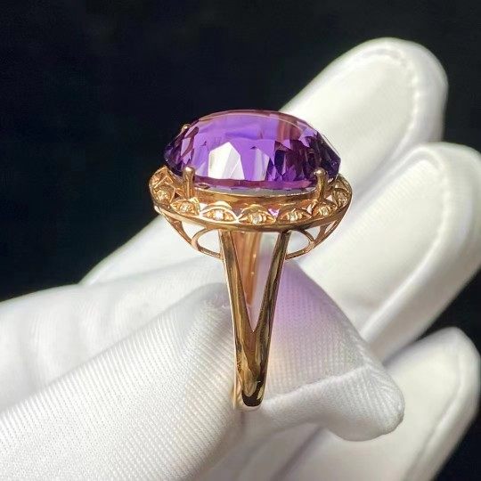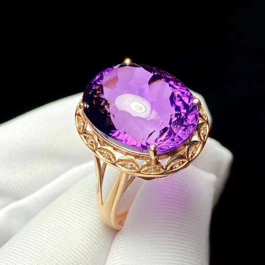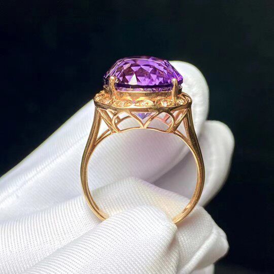 淘宝精品天然紫水晶戒指正品18k金镶嵌天然紫水晶戒指富贵紫假一赔十