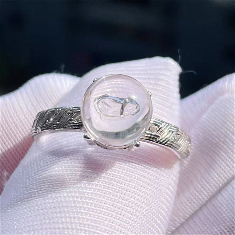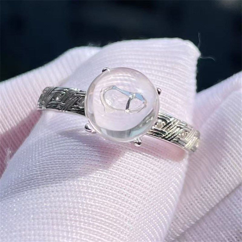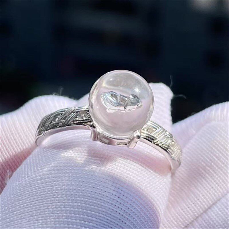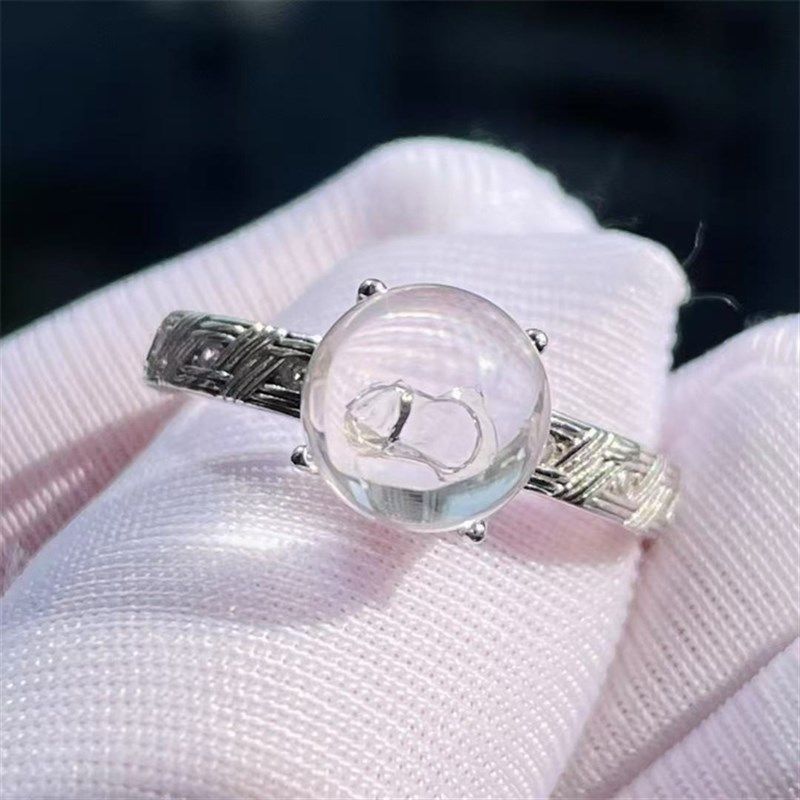 淘宝天然水晶全包裹荧光胆包异象圆珠裸石银镶嵌戒指环活口一物一图款