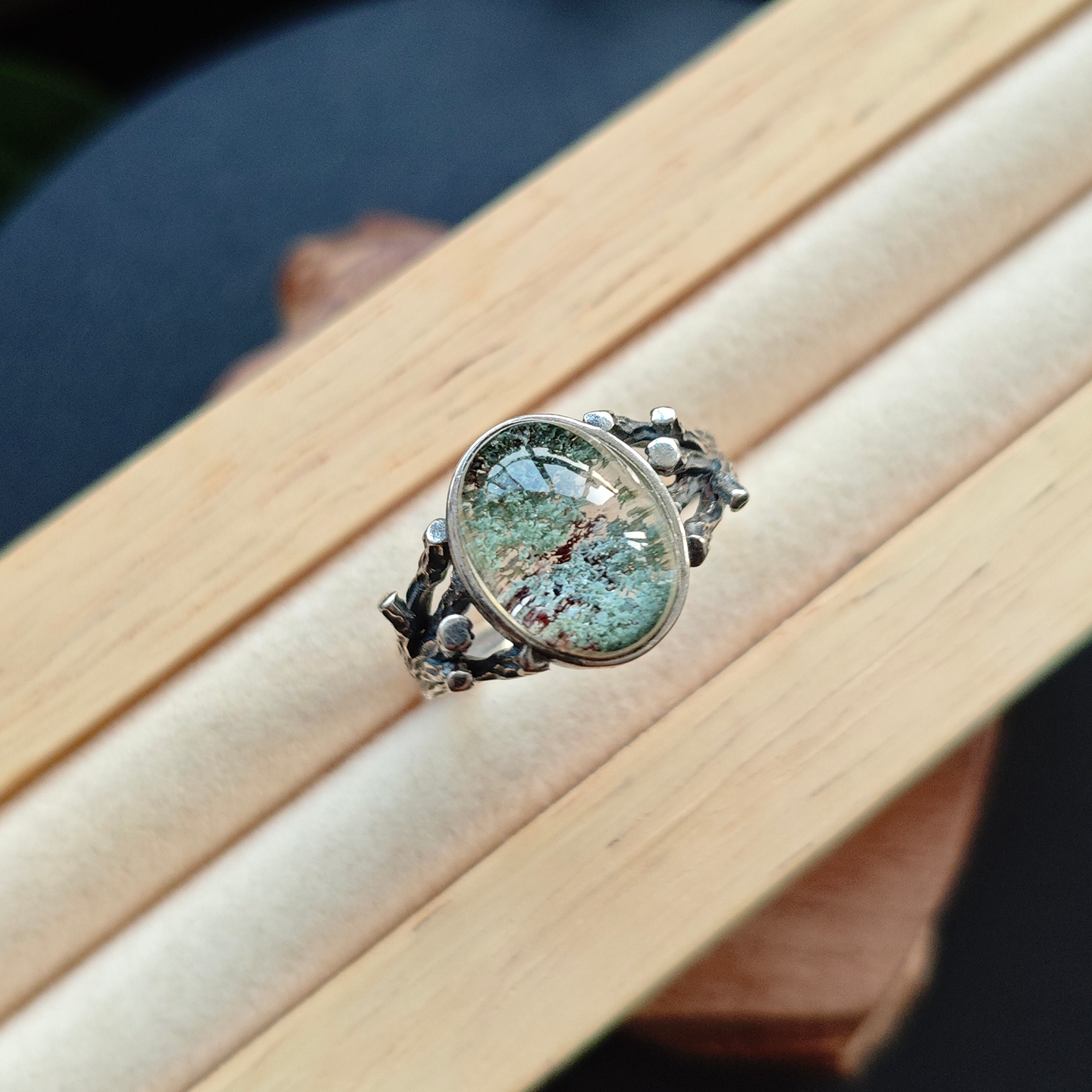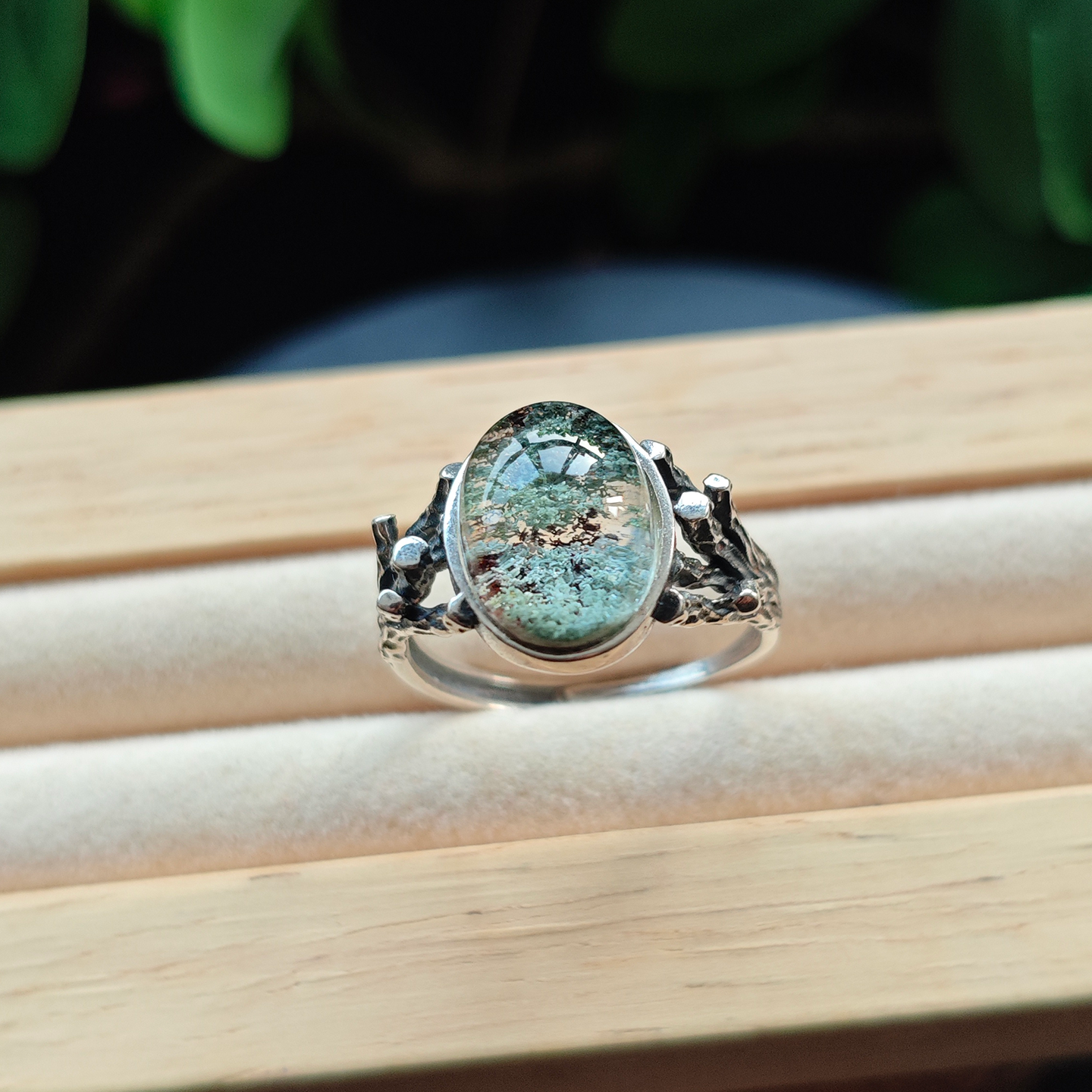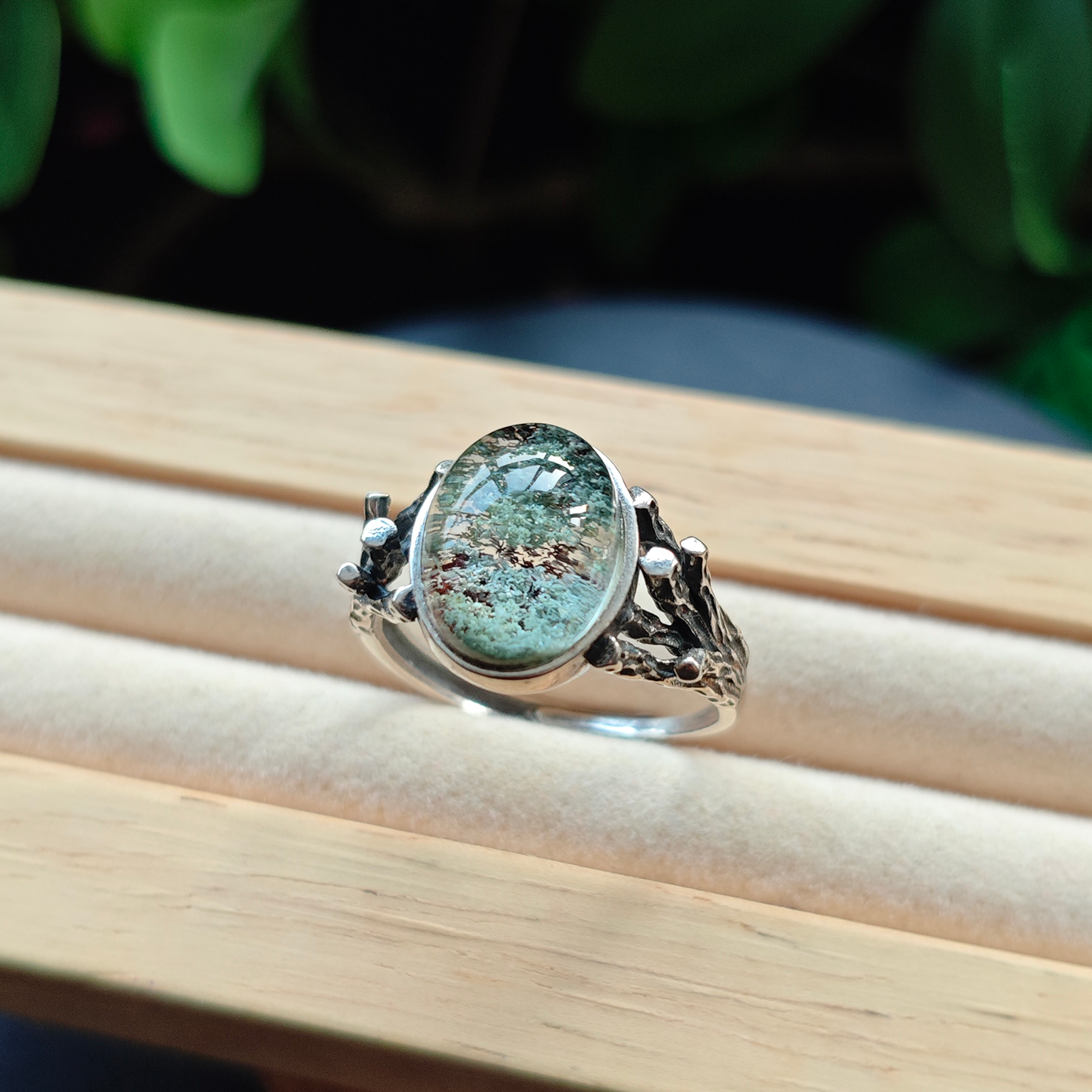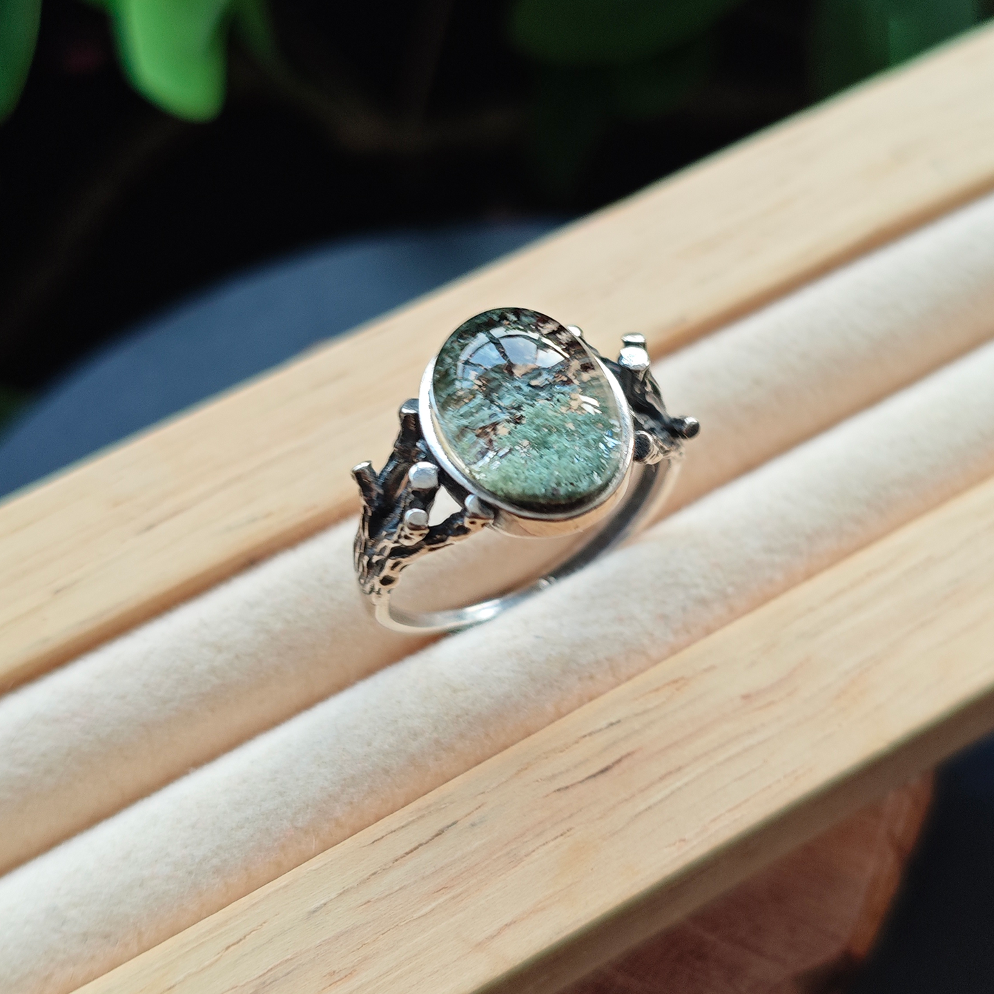 天猫天然绿色宝石戒指女复古银色开口戒指时尚个性疗愈五行属木绿幽灵