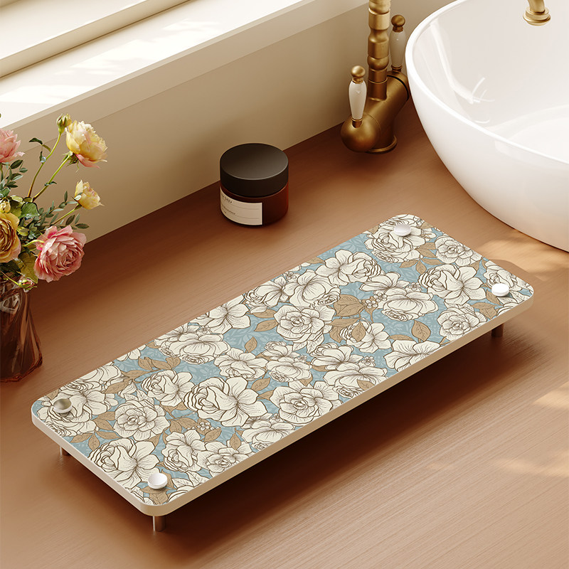 这款轻奢美式洗手台置物架,融合经典美式设计与现代轻奢美学,为浴室空间增添优雅格调。采用优质硬硅藻泥材质打造台面,具备超强吸水性能,快速干燥,有效防霉抑菌,保持台面持久干爽洁净。置物架结构稳固,合理分区设计,可轻松收纳漱口杯、牙刷、护肤品、香皂等日常用品,保持台面整洁有序。底部配备吸水垫,进一步防止水渍积聚,保护柜体不受潮。整体造型简约大气,线条流畅,适配多种装修风格,兼具实用性与装饰性。无论是家庭浴室还是酒店卫生间,都能提升使用体验,是现代品质生活的理想之选,让每一次洗漱都成为一种享受。
