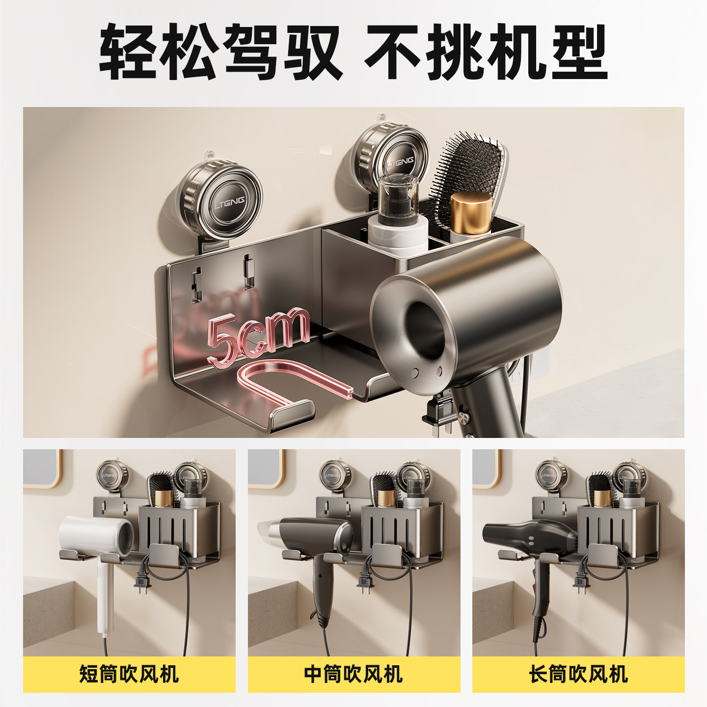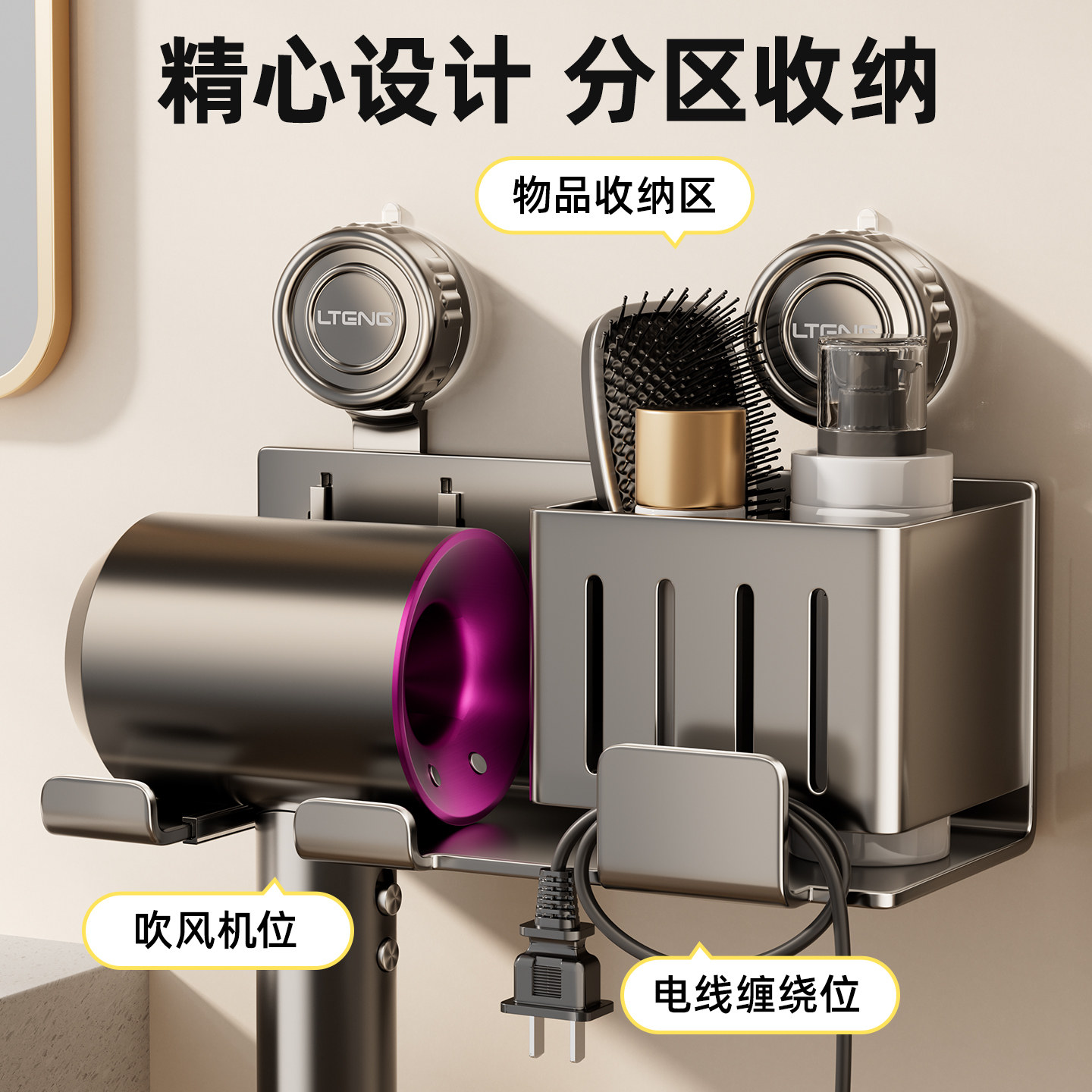 淘吸盘吹风机支架置物架免打孔卫生间铝合金浴室适用戴森电风筒挂架
