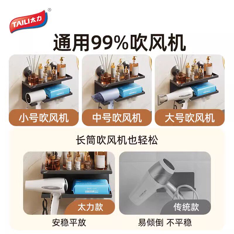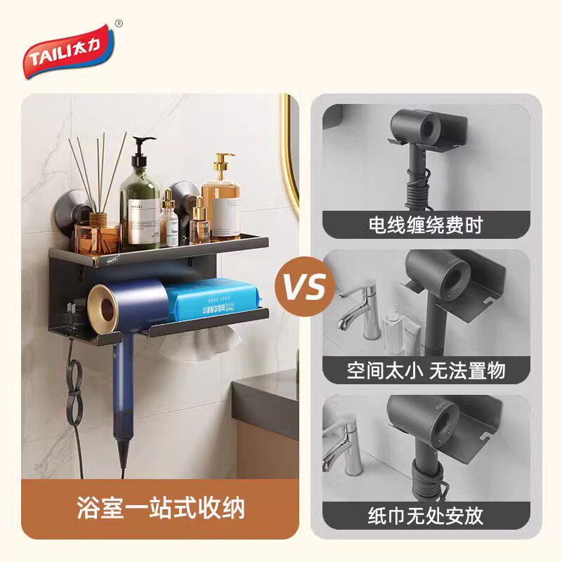 天猫太力吹风机支架浴室免打孔置物架卫生间电吹风挂架壁挂电吹风筒架
