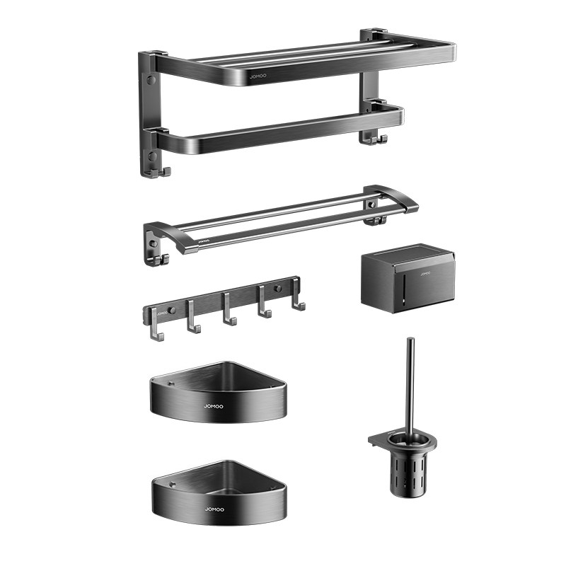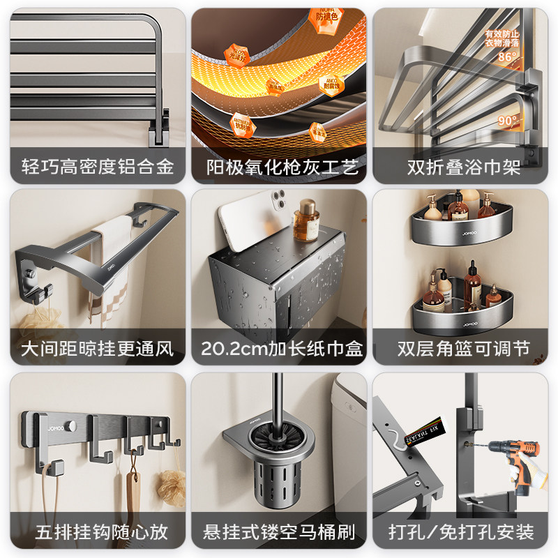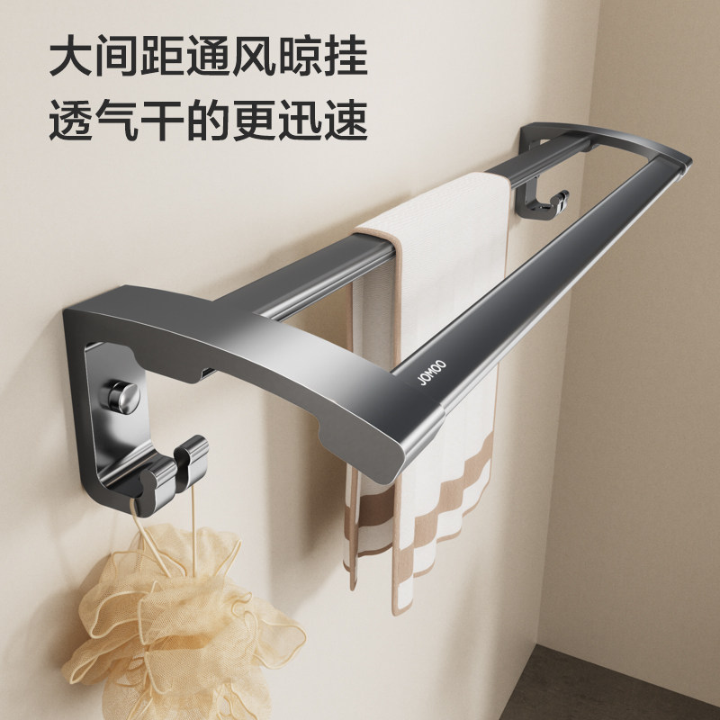淘宝九牧卫浴枪灰浴室挂件套装卫生间置物架双折叠毛巾架浴巾架免打孔