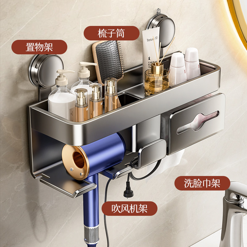 淘吸盘吹风机支架置物架免打孔卫生间铝合金浴室适用戴森电风筒挂架