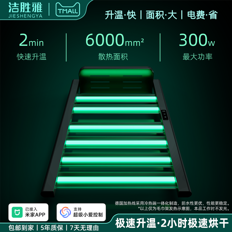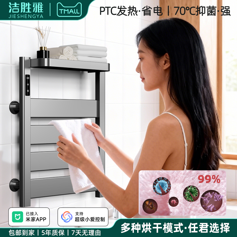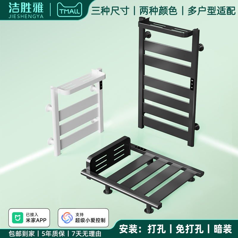 天猫可辅助取暖智能电热毛巾架免打孔浴室毛巾衣物烘干杀菌加热置物架