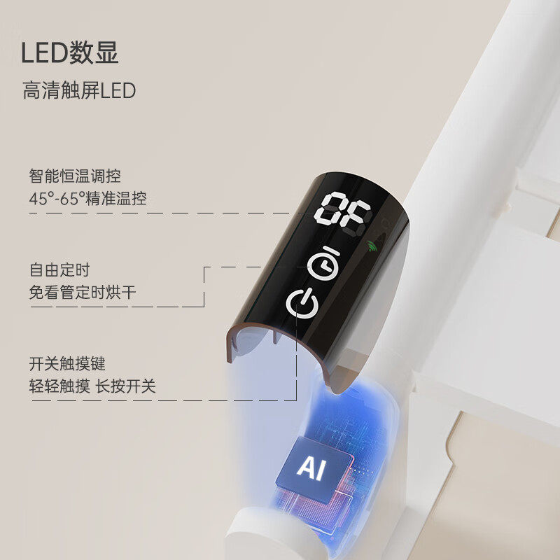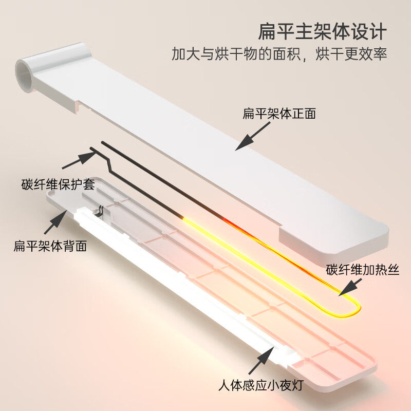 智能电热毛巾架集加热烘干、紫外杀菌与置物功能于一体,专为现代家庭浴室设计。采用免打孔安装技术,稳固安全,不伤墙面,轻松实现明装布置。通电后快速升温,有效烘干潮湿毛巾,防止细菌滋生;内置UV紫外线杀菌模块,一键启动,深度除菌,呵护家人健康。同时具备智能温控与定时功能,节能又安全。开放式置物架设计,可悬挂多条毛巾或放置洗漱用品,提升空间利用率。适用于卫生间、浴室等潮湿环境,防潮防锈,持久耐用,是提升居家生活品质的贴心之选。