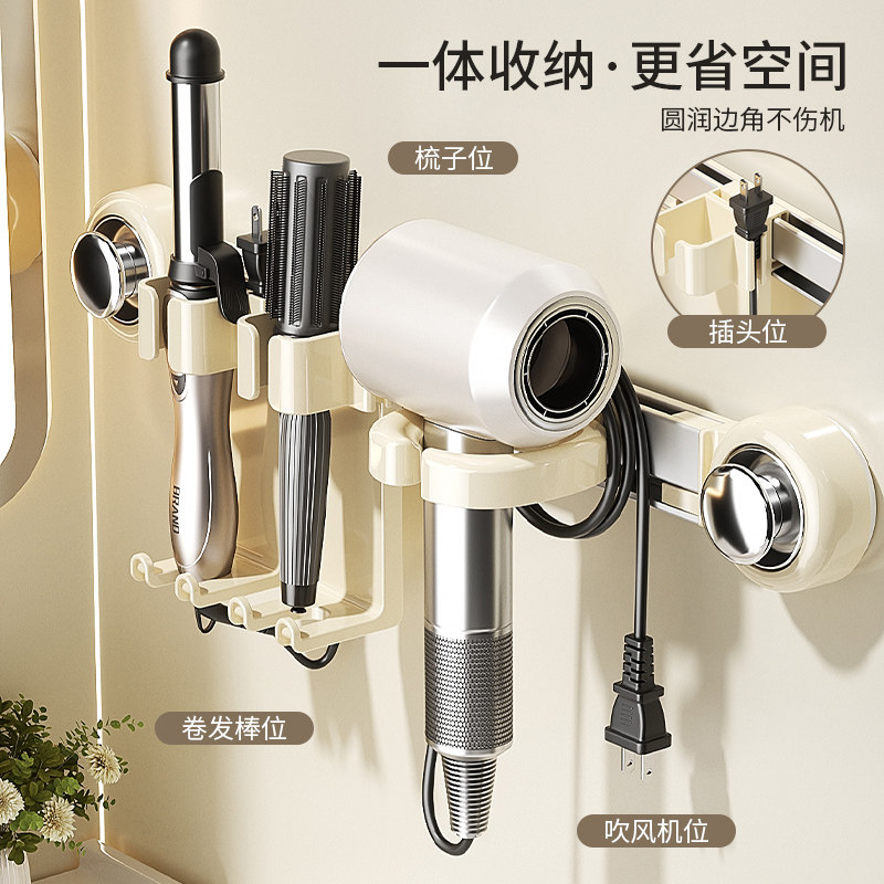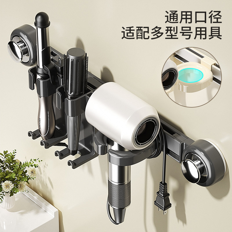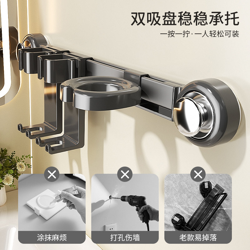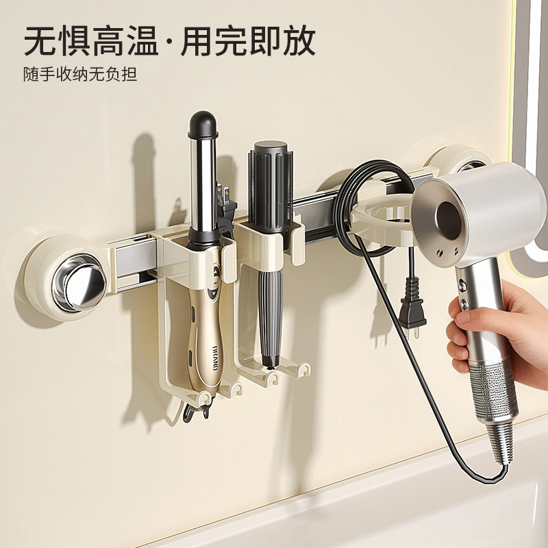 天猫吸盘吹风机置物架浴室免打孔电吹风卷发棒一体可移动滑轨收纳挂架