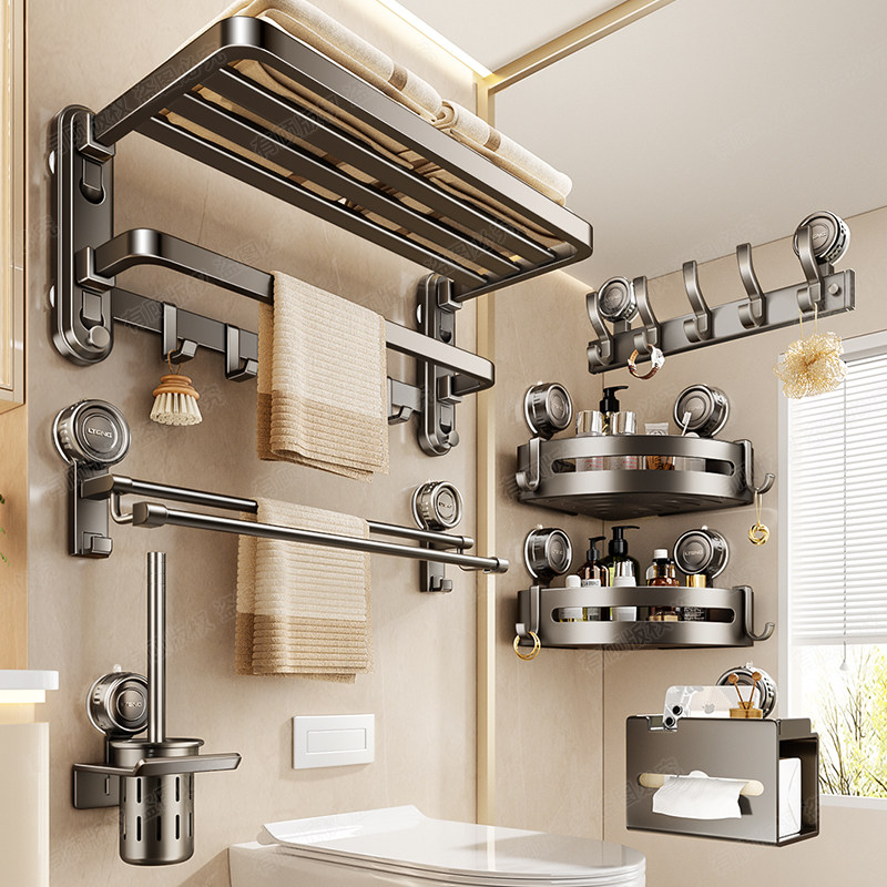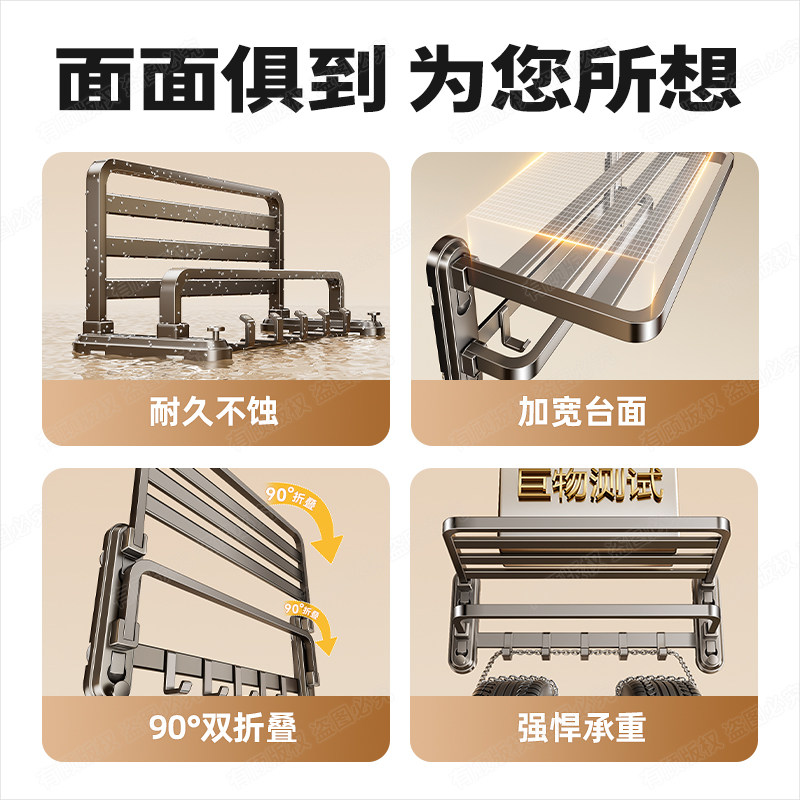 天猫吸盘毛巾架卫生间免打孔浴室置物架折叠浴巾架壁挂式毛巾收纳架