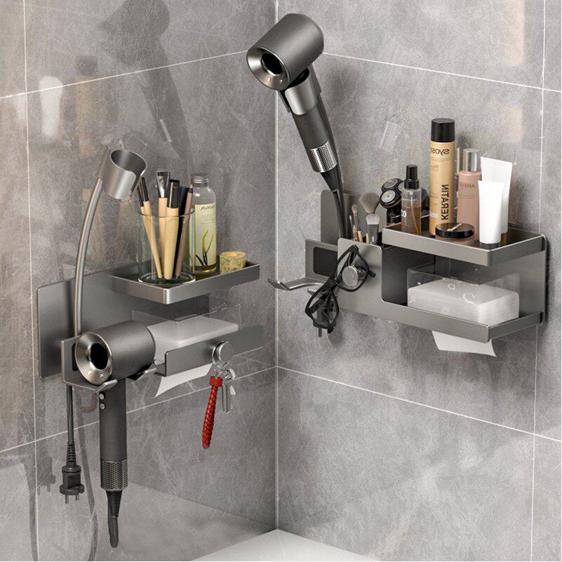 淘吸盘吹风机支架置物架免打孔卫生间铝合金浴室适用戴森电风筒挂架