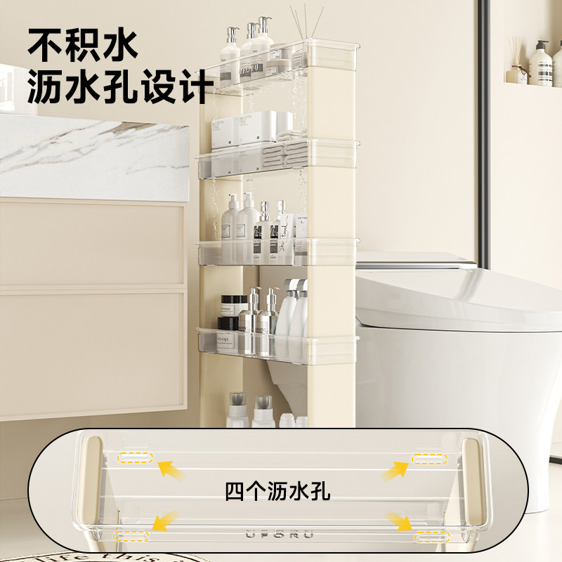 天猫卫生间置物架厕所缝隙收纳柜浴室门后置物架落地可移动夹缝收纳柜