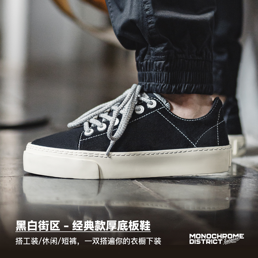 天猫马登厚底帆布鞋新款翻毛皮黑色低帮增高男鞋休闲运动百搭板鞋