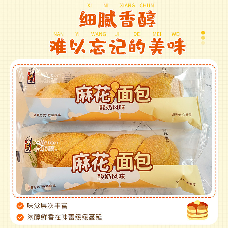 淘宝卡尔顿酸奶爆浆麻花面包早餐休闲食品营养 小吃夹心面包蛋糕整箱
