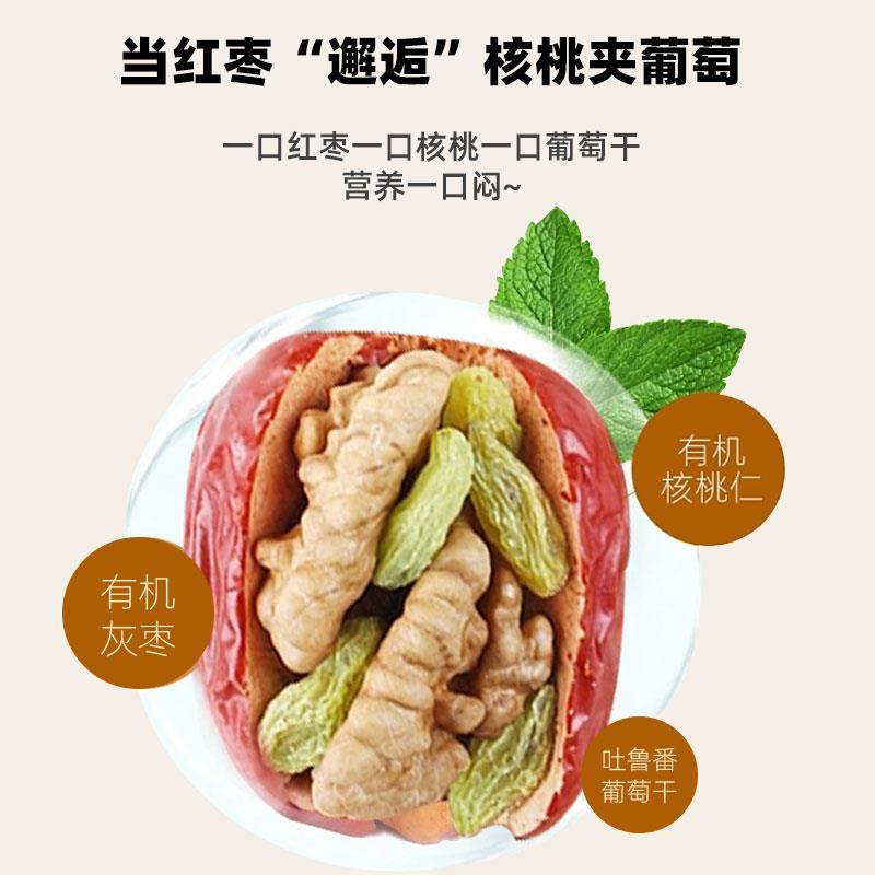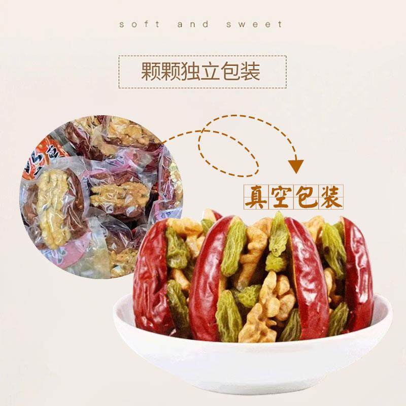 天猫新疆枣夹核桃单独包装新疆特产和田红枣核桃葡萄干真空营养零食