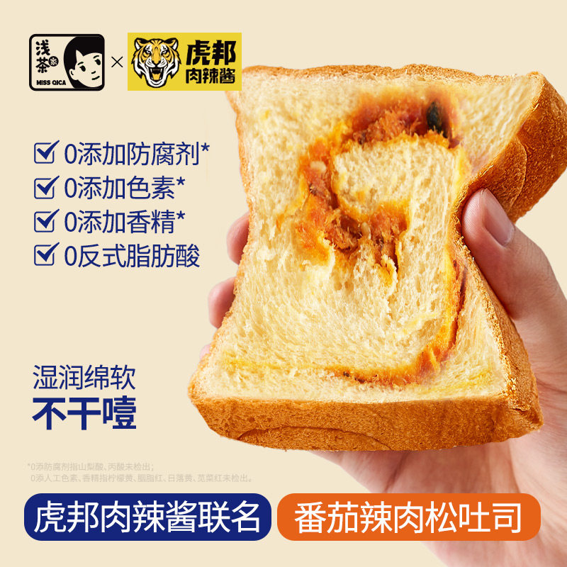 天猫浅茶家夹心吐司面包番茄辣肉松手工健康早餐营养饱腹主食网红零食