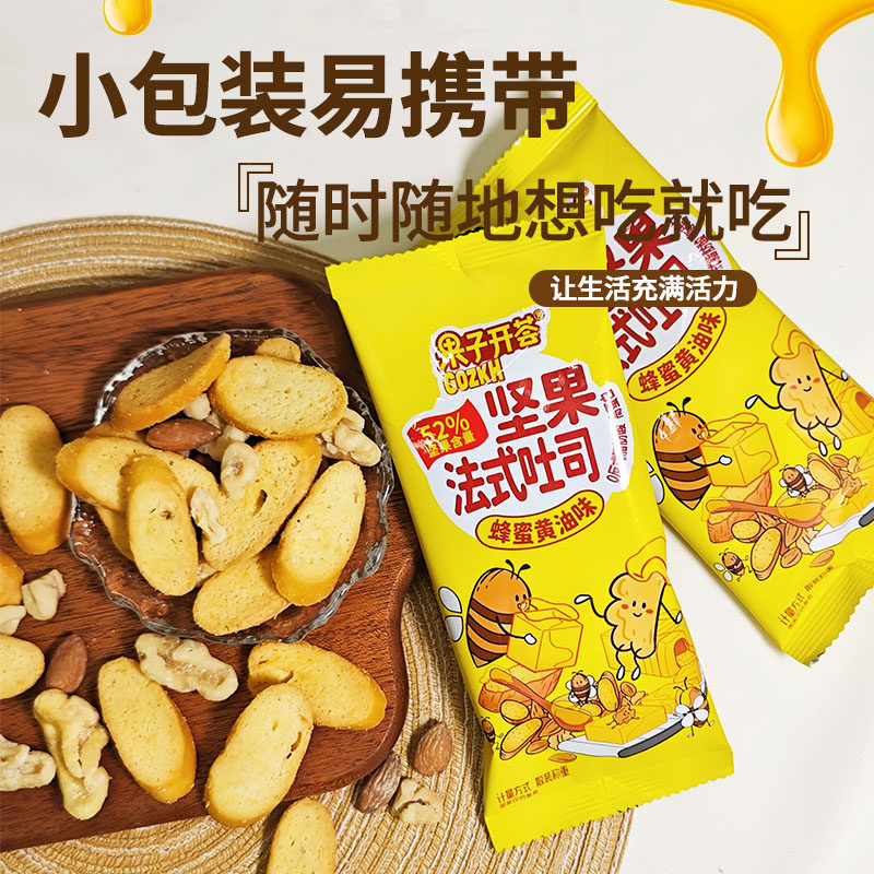 天猫果子开荟法式吐司坚果酥脆黄油味蜂蜜味独立小包营养早餐代餐零食