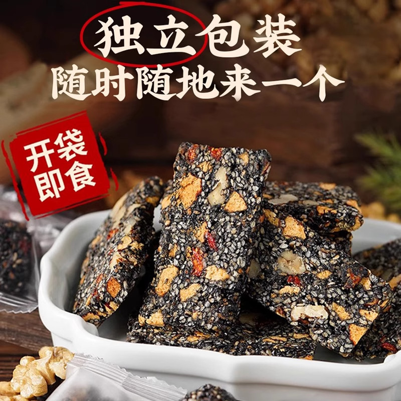 天猫黑芝麻核桃糕红枣核桃枸杞早餐营养芝麻片休闲零食品小吃健康解馋