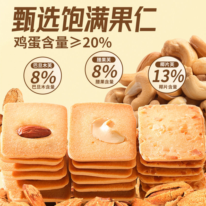 淘宝坚果芙脆饼干腰果巴旦木干烙蛋糕营养早餐休闲零食品小吃早餐曲奇