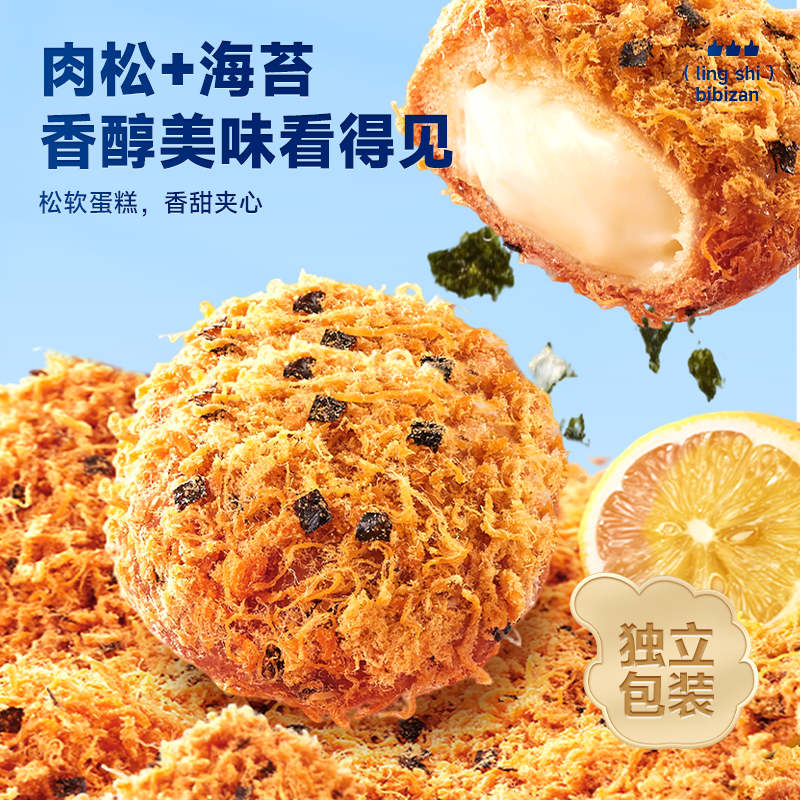 天猫短保比比赞爆浆肉松小贝混合味营养早餐面包整箱蛋糕零食夹心面包