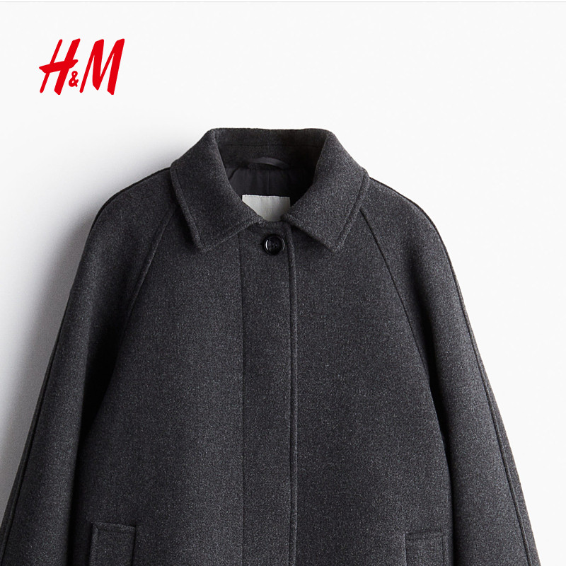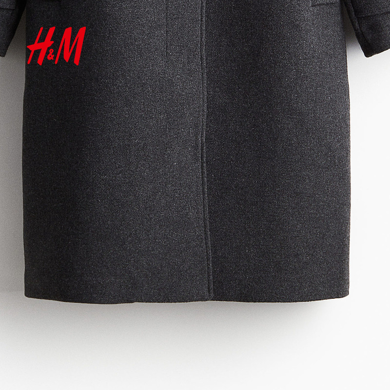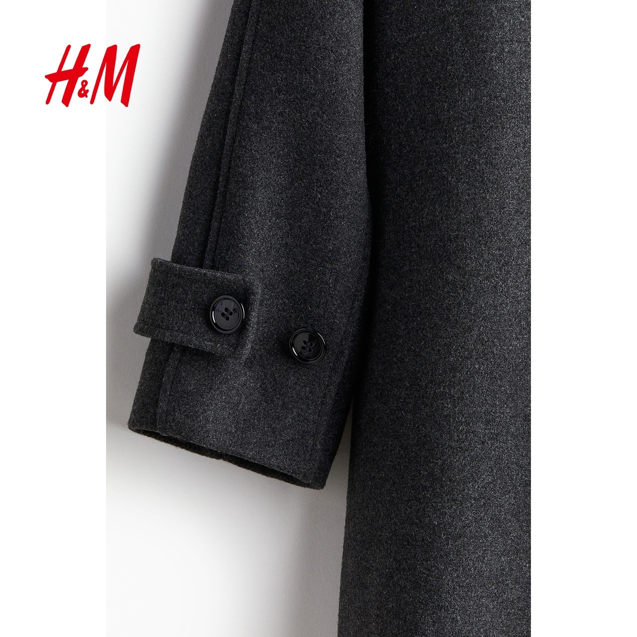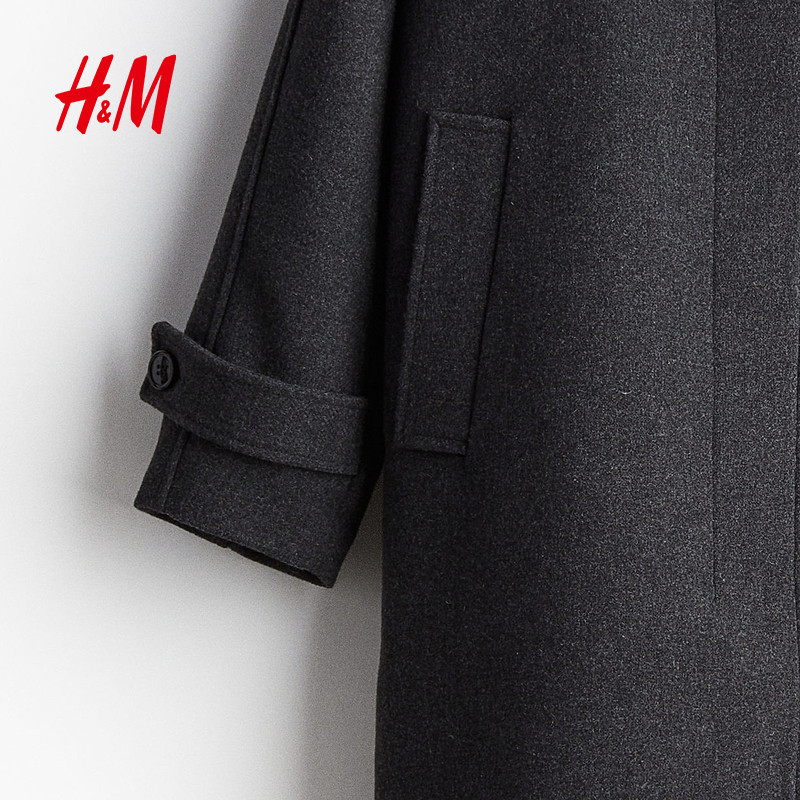 天猫HM女装毛呢外套冬季宽松简约时尚保暖及膝大衣老钱风风衣1253843