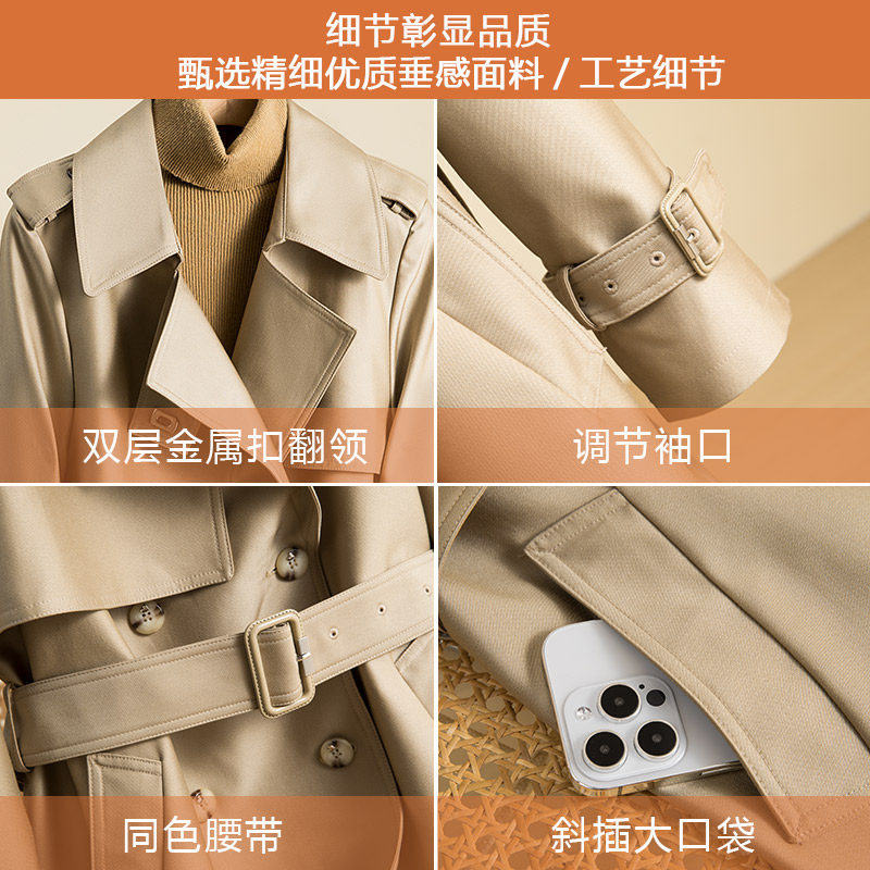 天猫大牌风衣女款2025新款春秋小个子免烫防皱高级感收腰显瘦短款外套