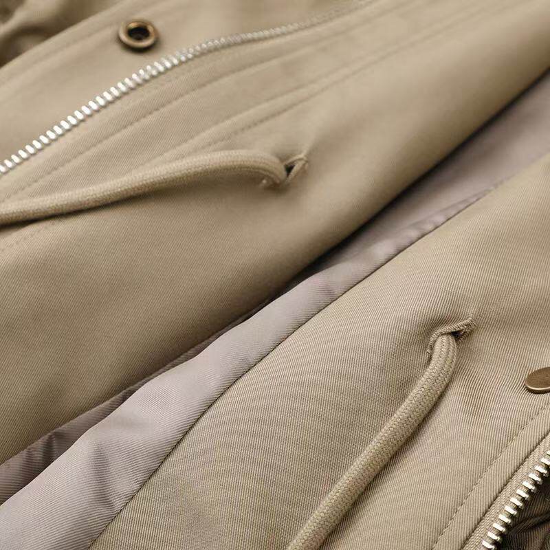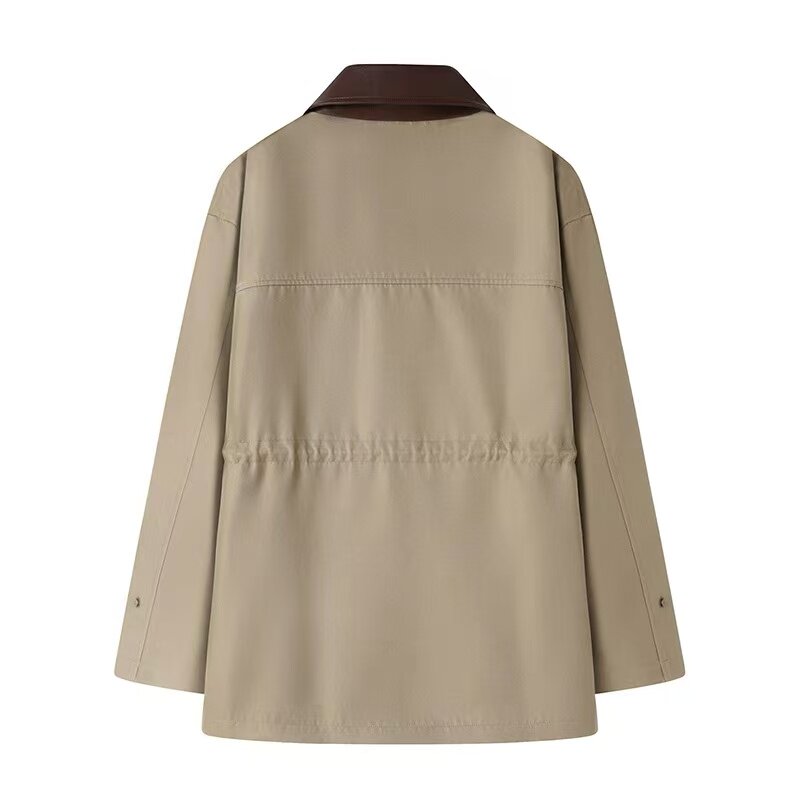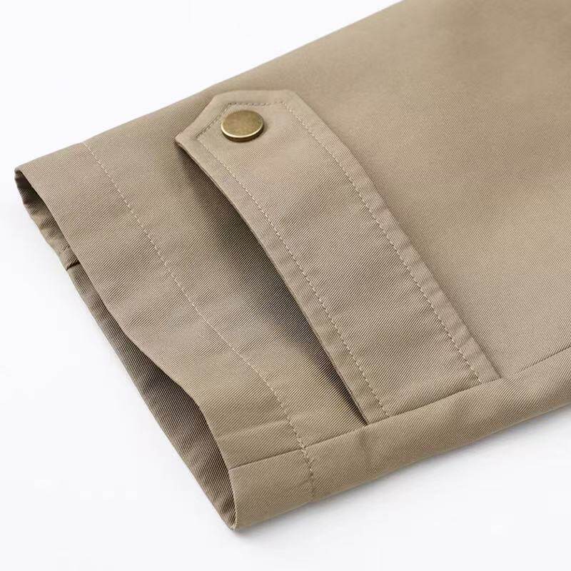 2025秋季新款“影系”巴恩风卡其色中长款风衣,融合复古工装元素与现代休闲美学,打造都市女性的率性穿搭。采用高品质卡其面料,挺括有型且轻盈透气,中长版型设计拉长身形比例,兼顾保暖与时尚。经典翻领、多口袋工装细节与可调节腰带相呼应,实用中彰显个性。低调卡其色调百搭易穿,轻松驾驭通勤、出街或周末休闲场景。无论是搭配牛仔裤还是连衣裙,都能演绎出随性而不失格调的复古风范,是今秋衣橱不可或缺的时尚单品。