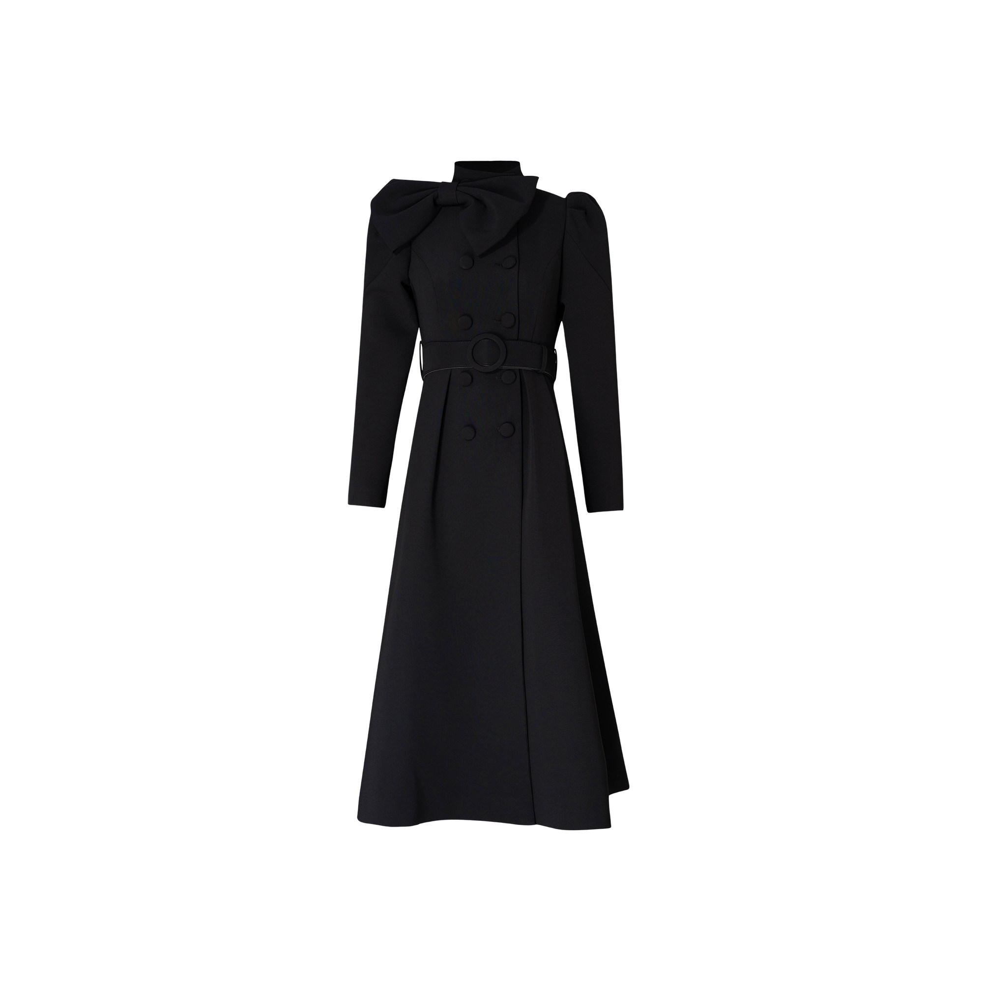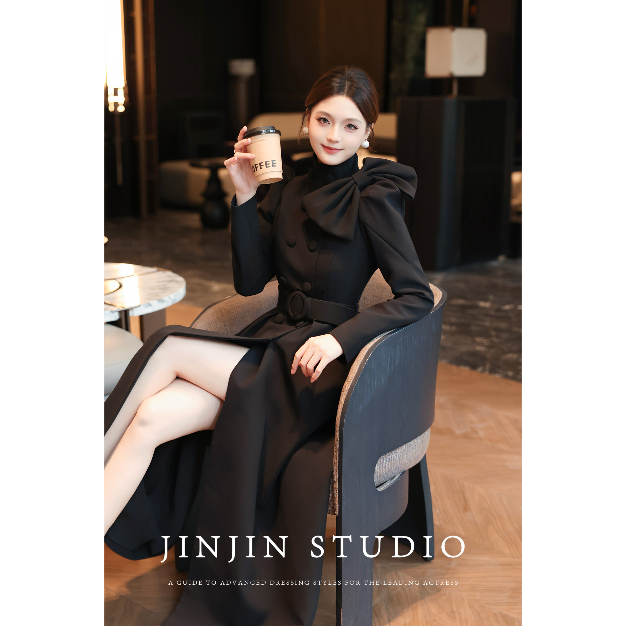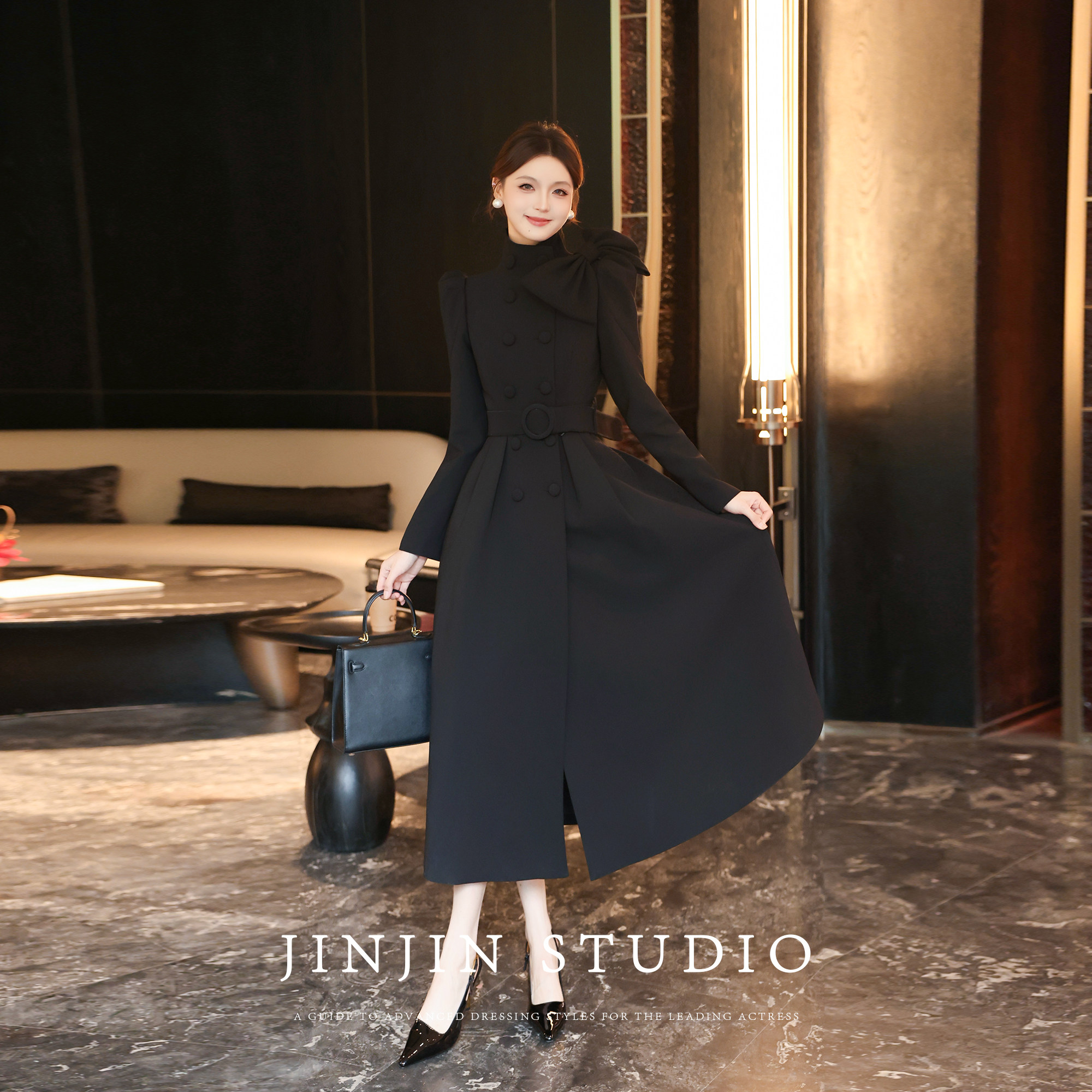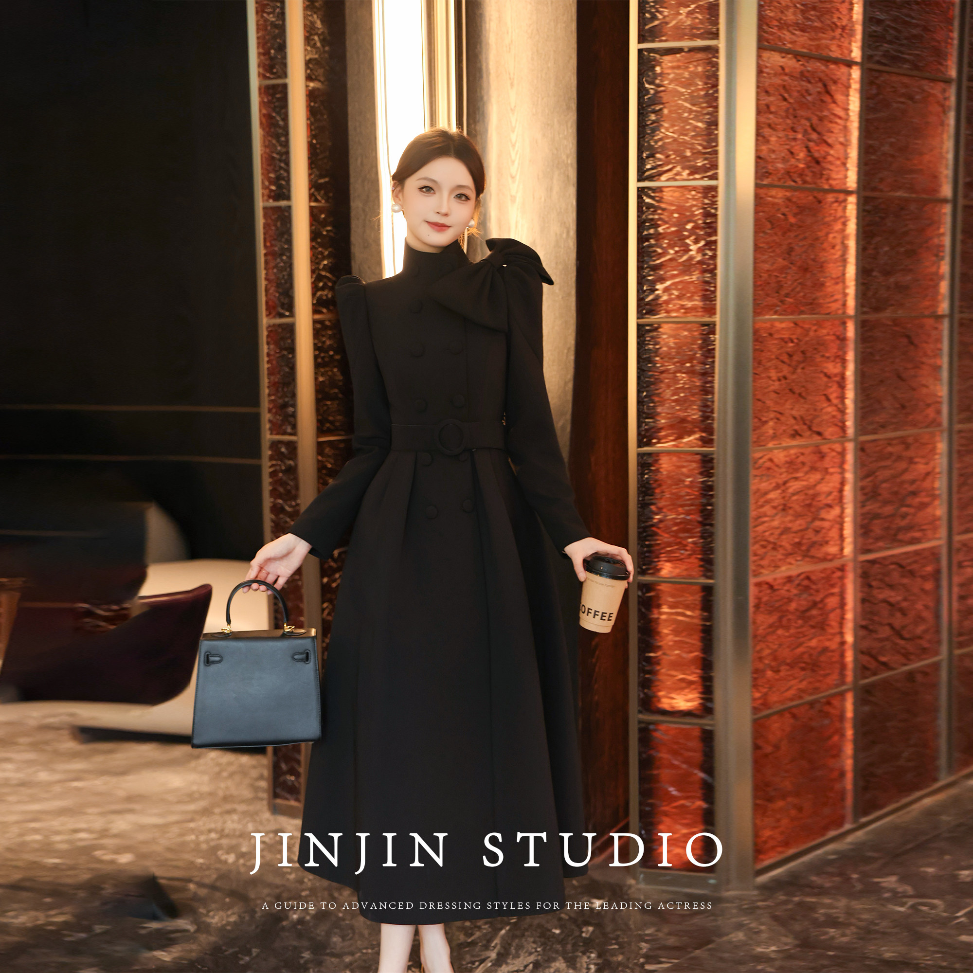 淘宝MD进进原创【精英气质】2025冬季轻奢赫本风洋气毛呢风衣连衣裙