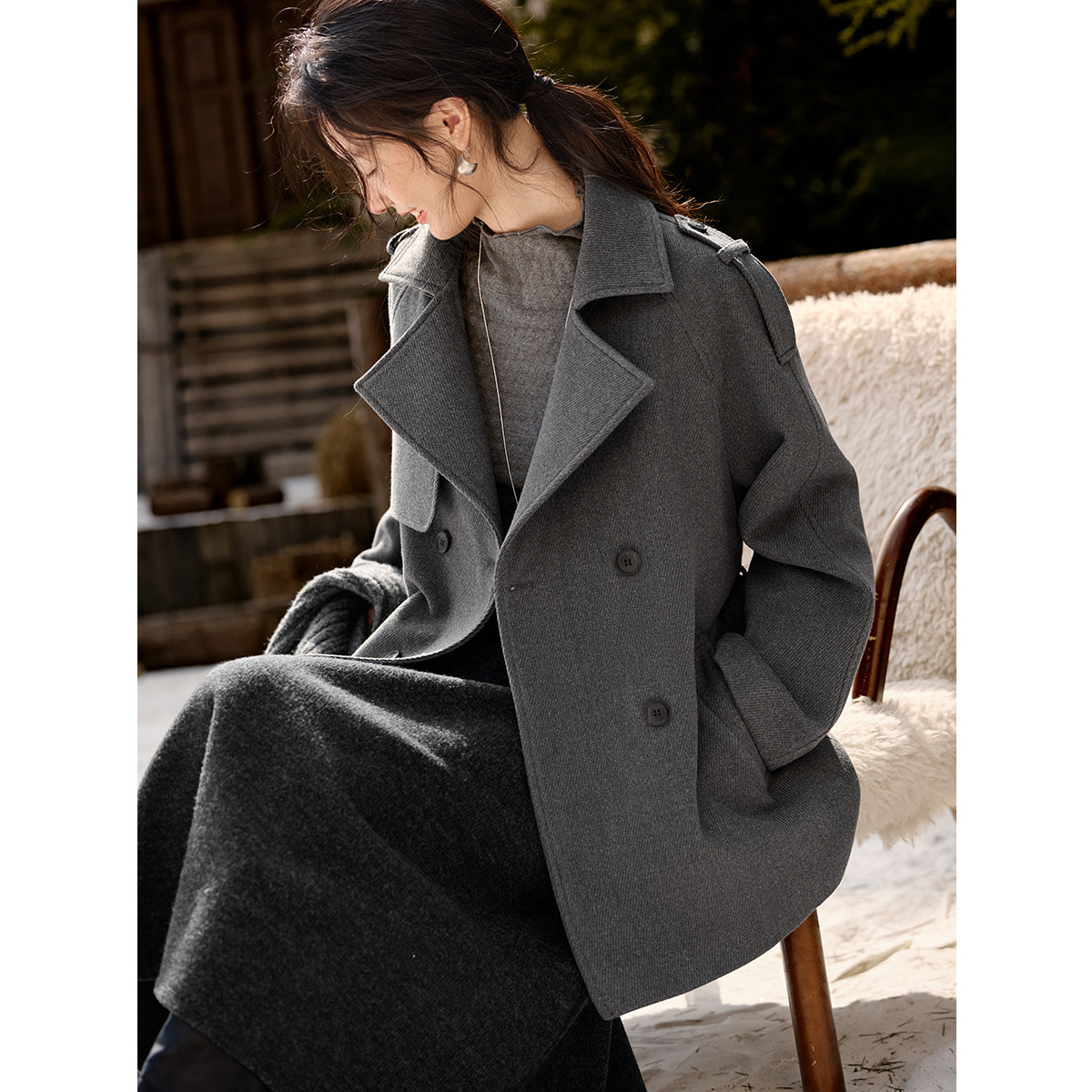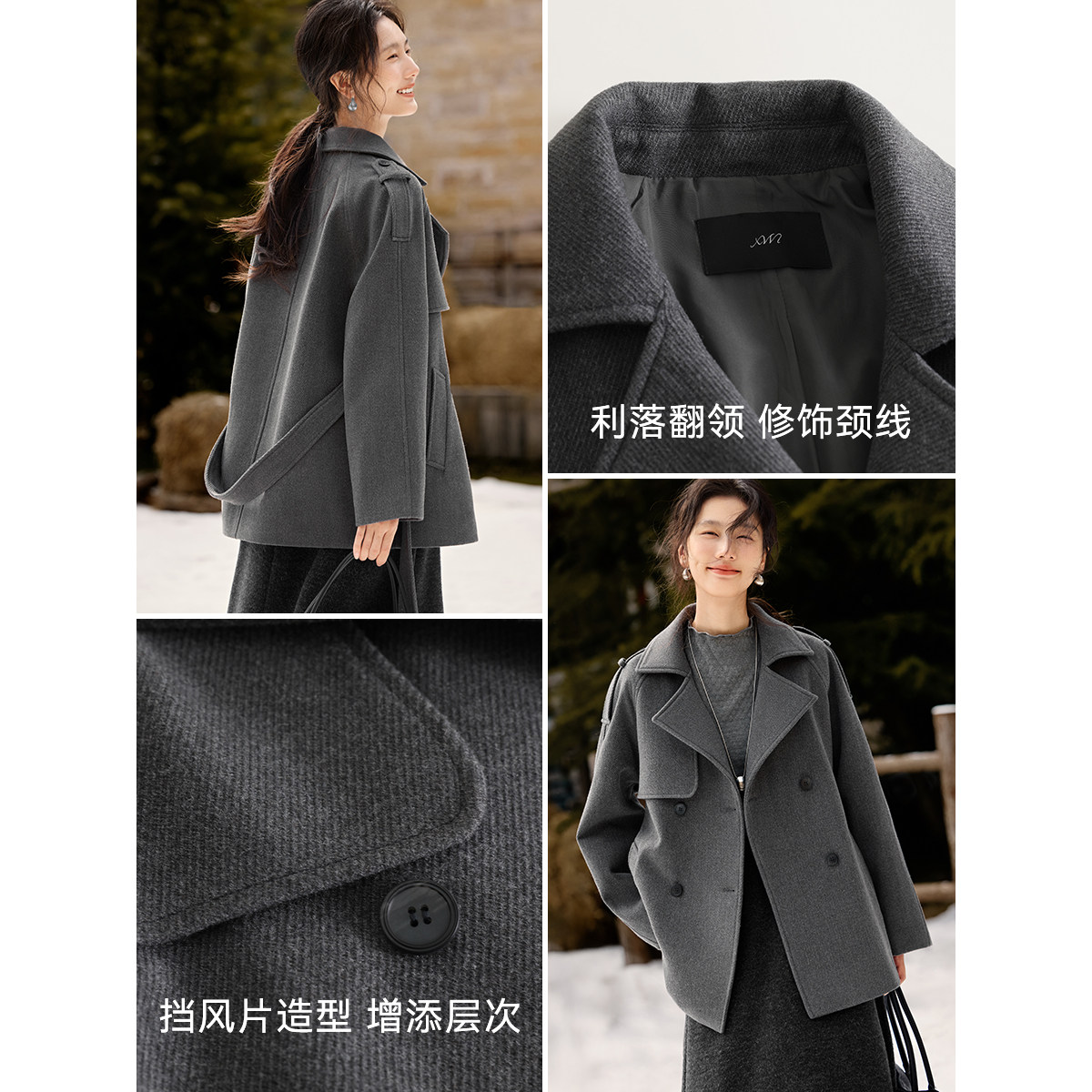 淘宝XWI欣未高智感重工风衣式单面呢大衣女冬季保暖显瘦灰色毛呢外套