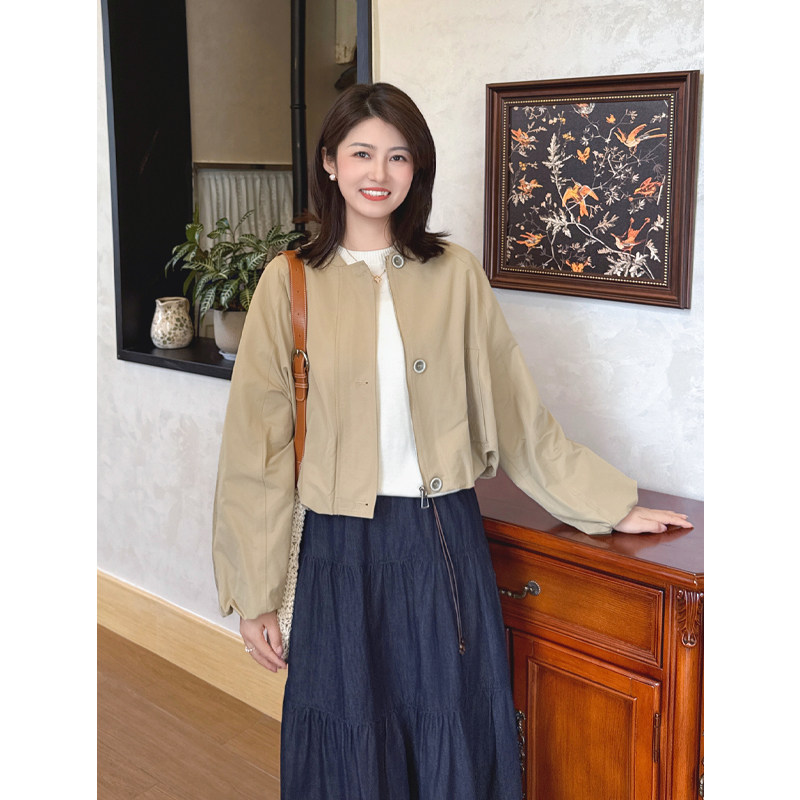 英伦老钱高级感立领灯笼袖风衣女秋冬气质抽绳收腰时尚卡其短外套