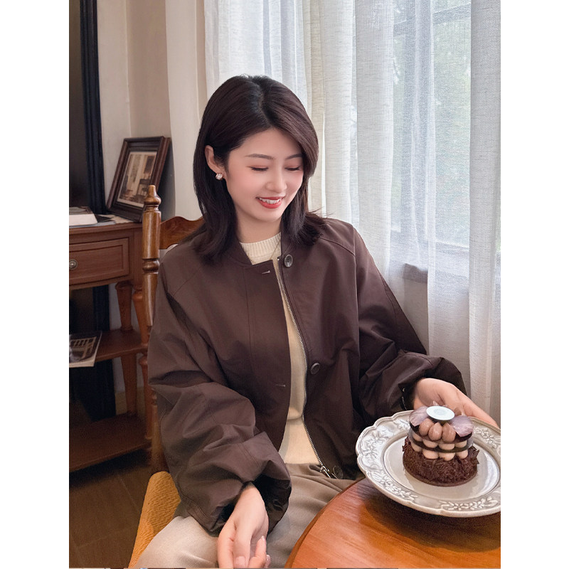 F383 美式复古立领飞行员翻领短款夹克女设计感宽松休闲风衣外套