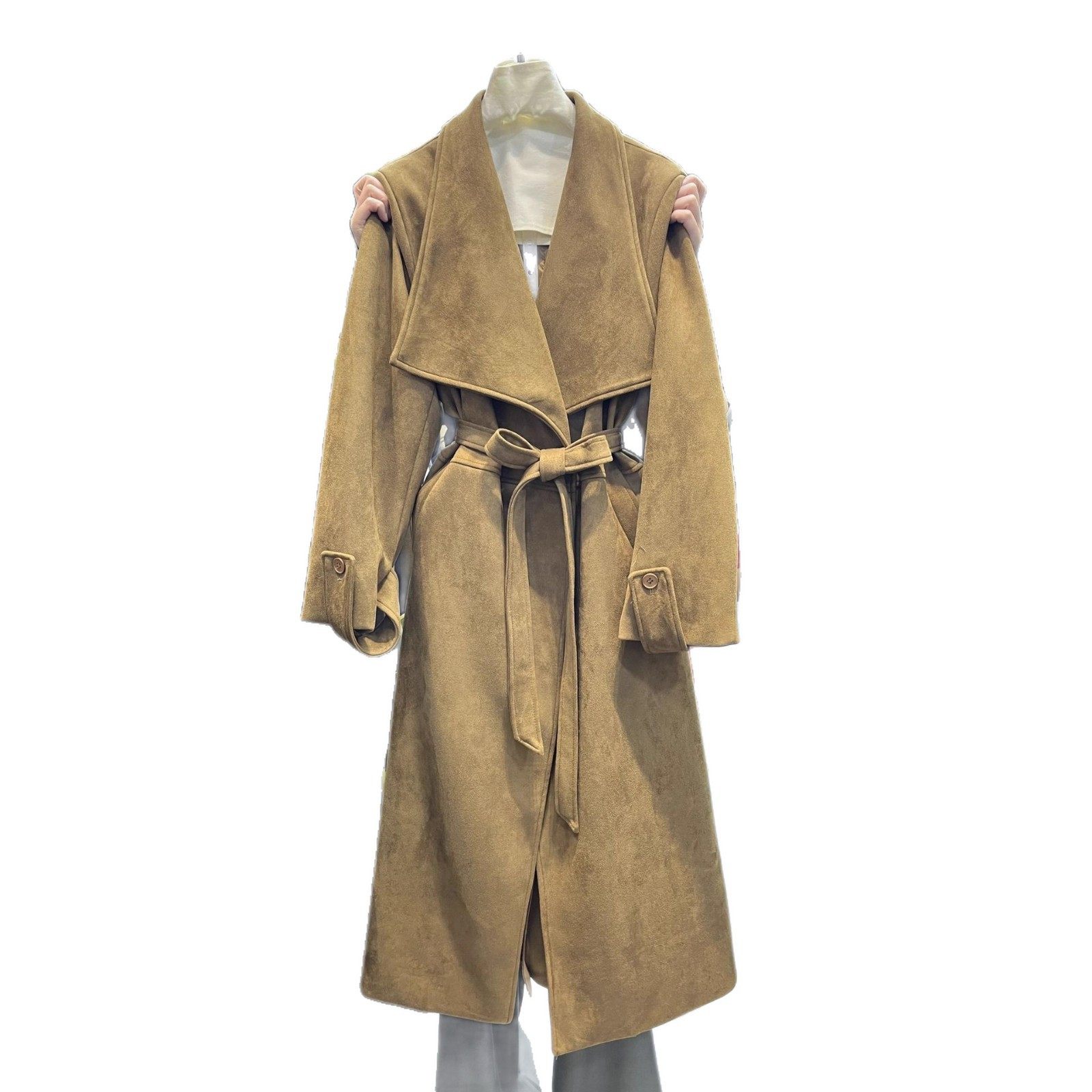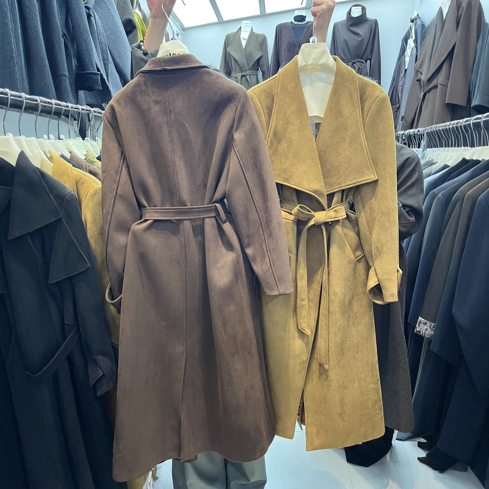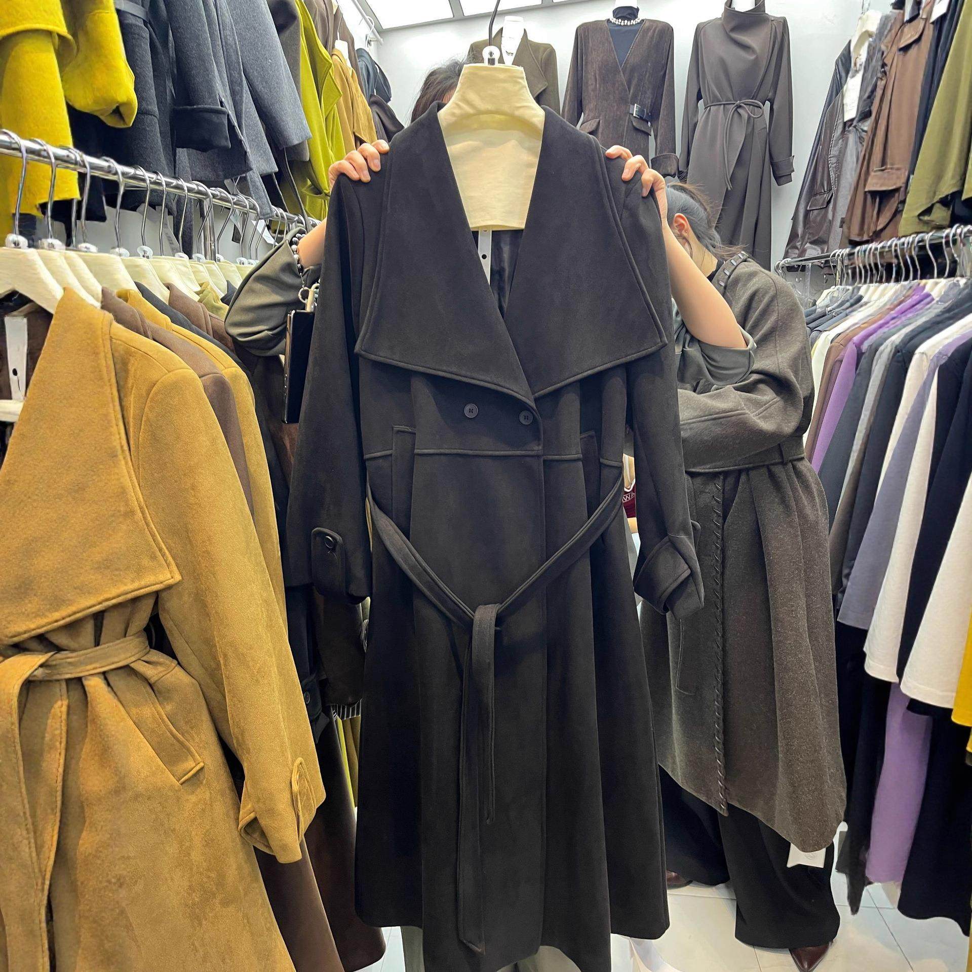 淘宝摩登女装2025秋冬新款韩版复古大翻领显瘦麂皮绒风衣秋季过膝长款