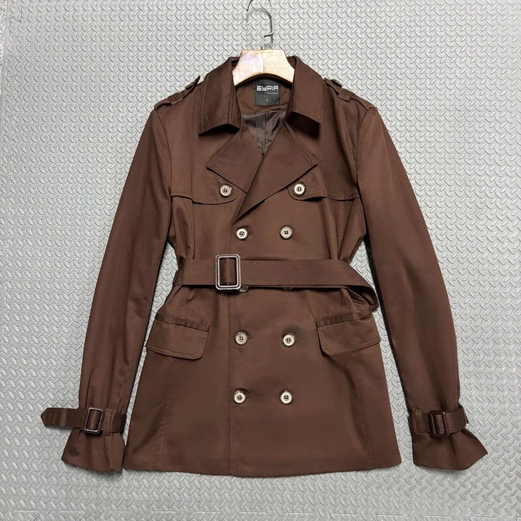 这款双排扣风衣是春秋季不可或缺的百搭时尚单品,专为小个子女生设计,中短款剪裁利落显高,轻松拉长身材比例。采用经典韩系英伦风设计,线条简约大气,双排金属扣增添复古质感,翻领与肩章细节彰显优雅气质。精选垂感挺括面料,穿着舒适有型,不易褶皱。黑色百搭属性极强,轻松驾驭通勤、约会、日常等多种场合,内搭针织衫或连衣裙皆宜。袖口可调节扣设计,提升穿着舒适度。无论是搭配牛仔裤打造休闲风,还是配半裙演绎轻熟魅力,都能展现独特品味。是小个子女生显高显瘦、提升气场的理想选择,轻松穿出高级感。