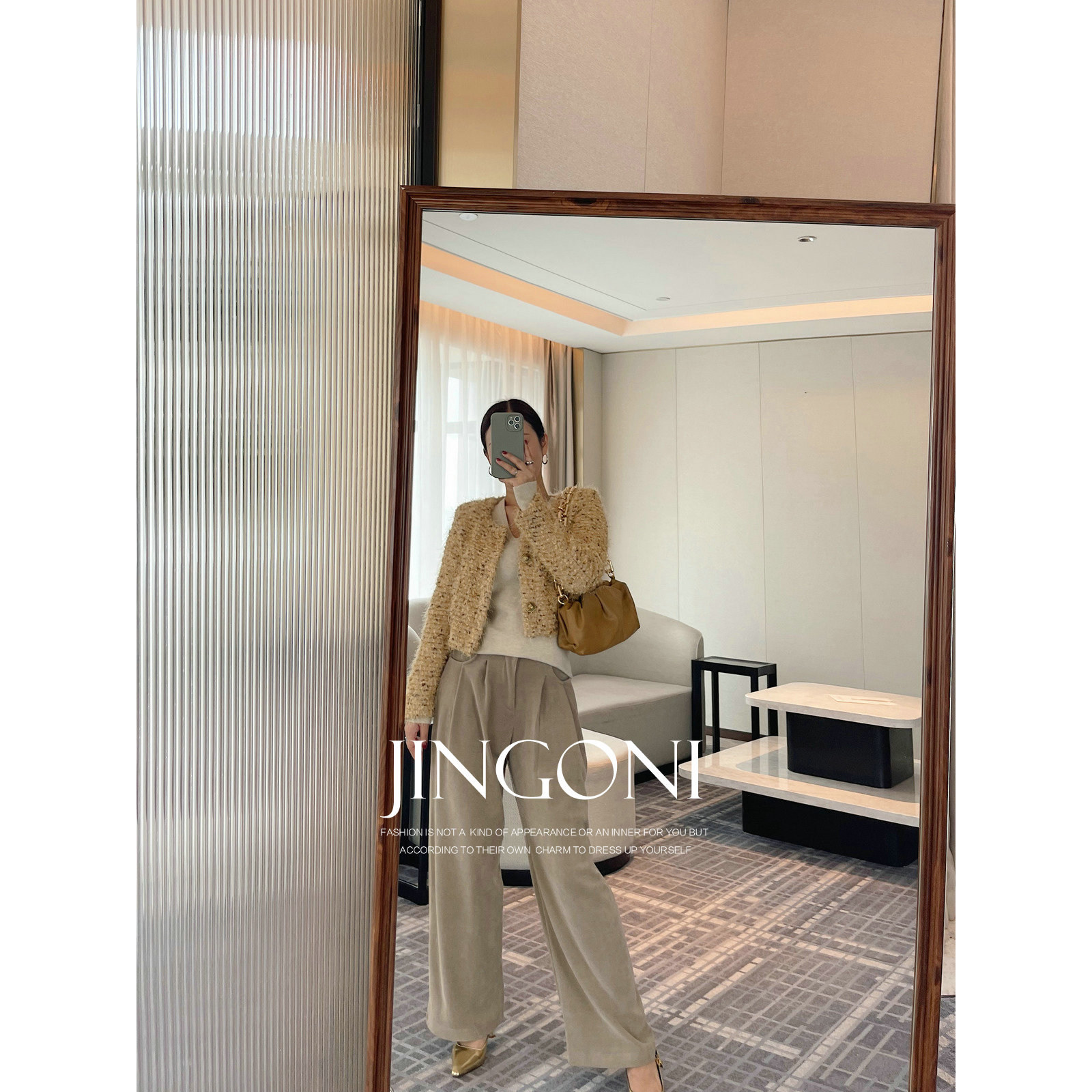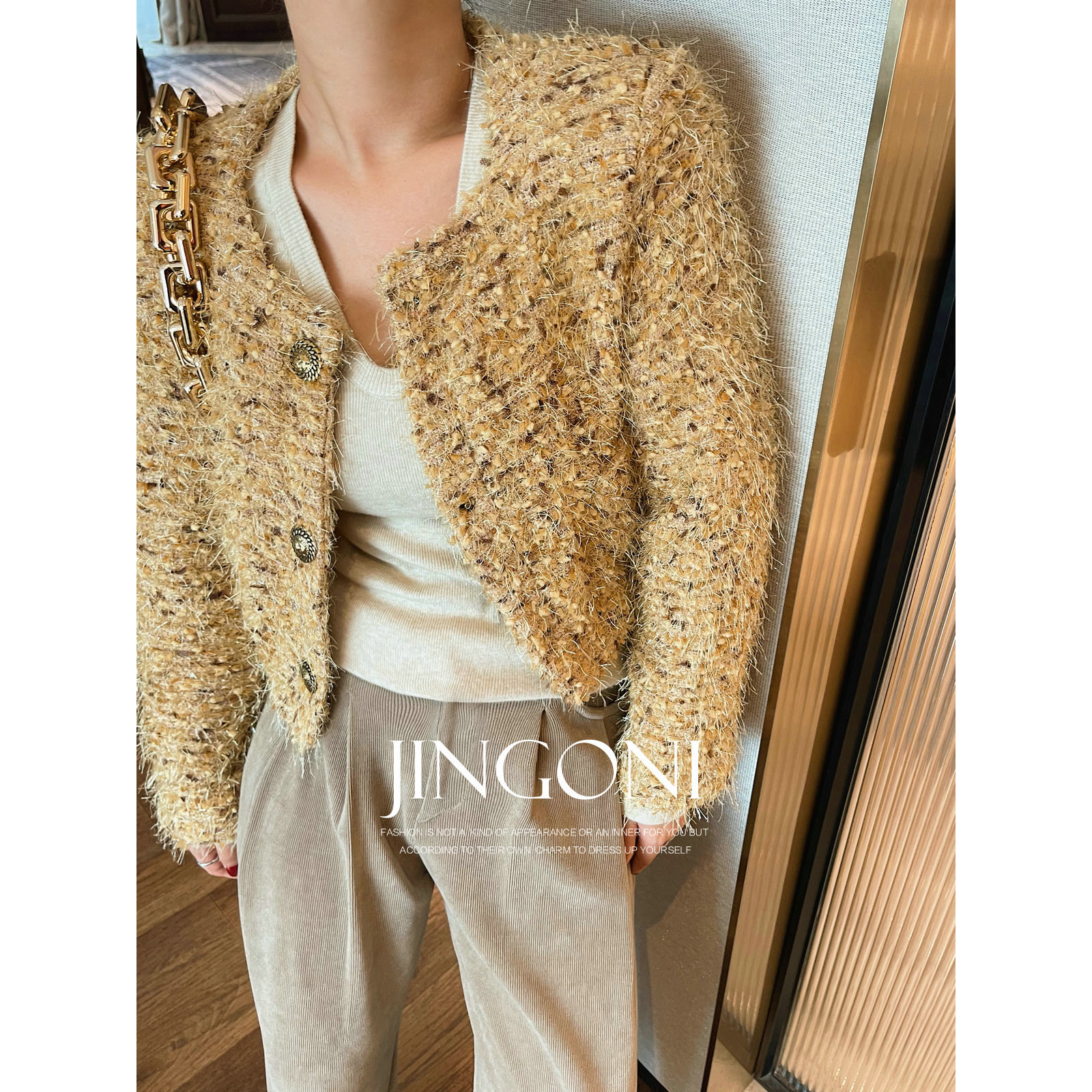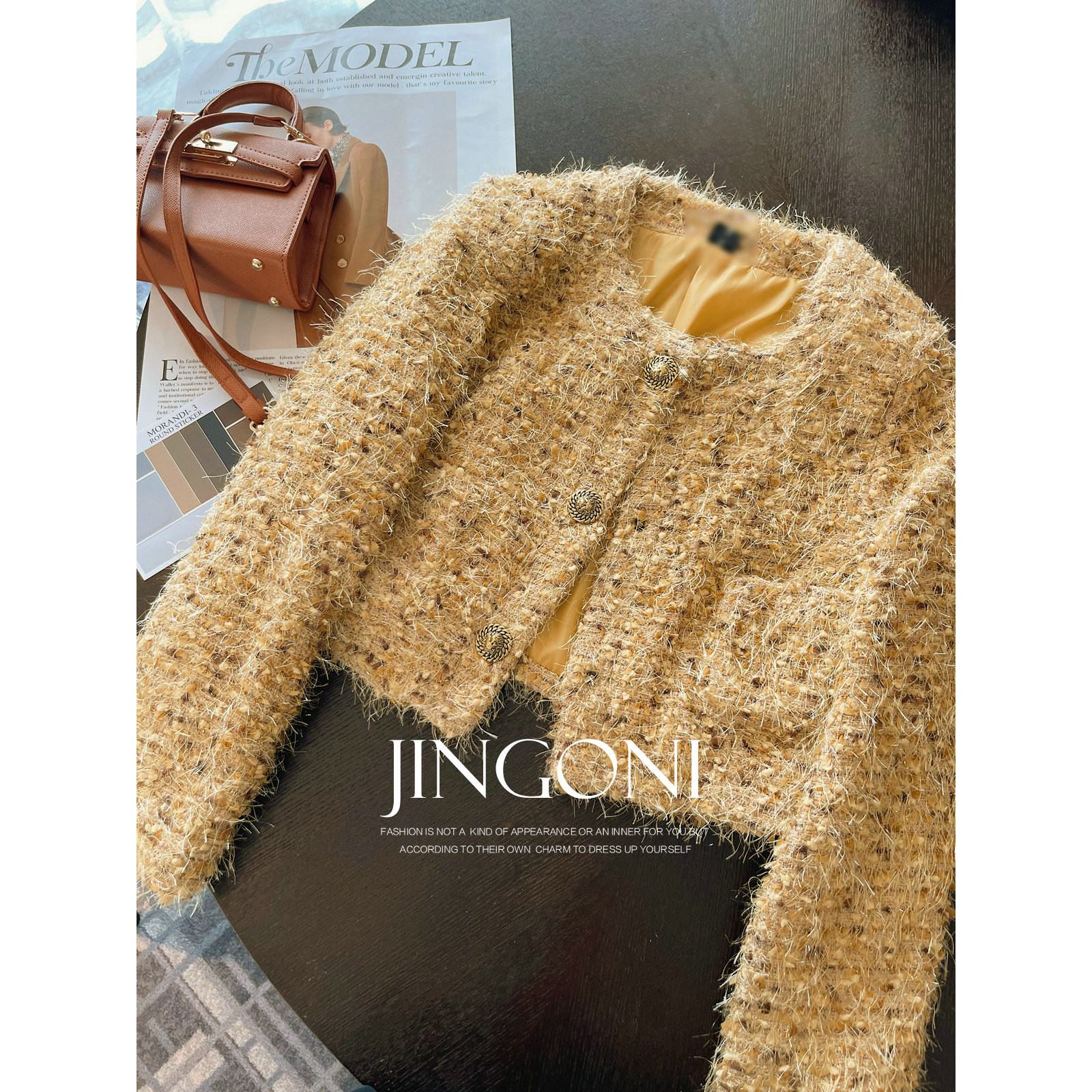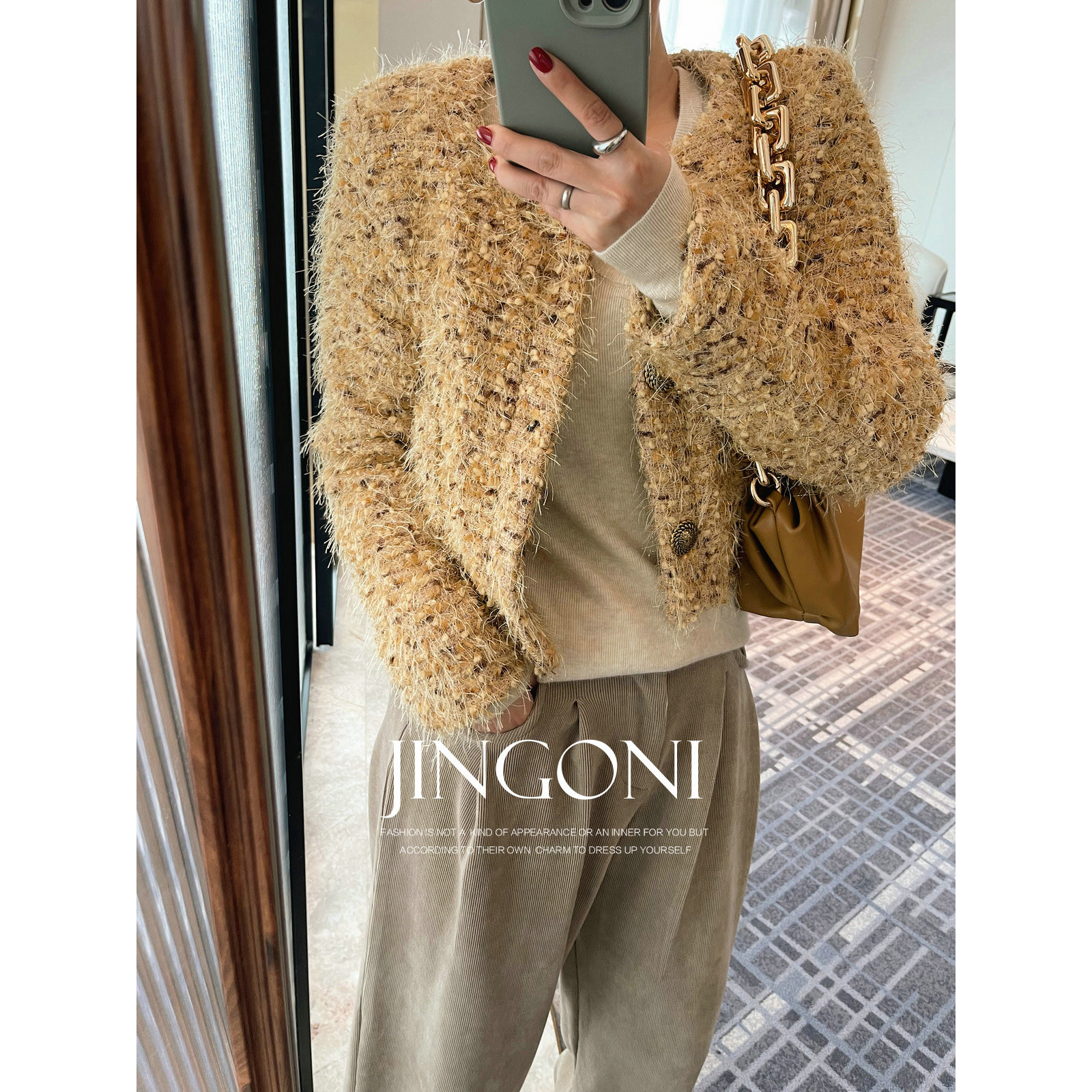 淘宝JINGONI小香风短外套女上衣秋冬新款夹克风衣气质显瘦小个子高级