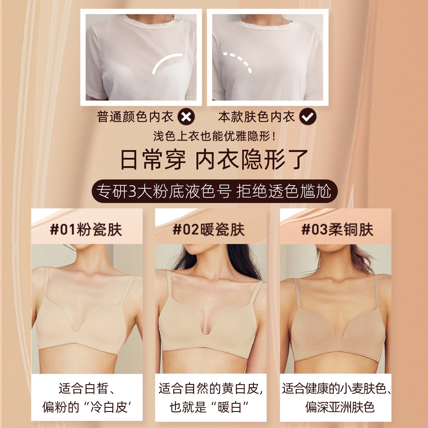 天猫好奇蜜斯肤色粉底液防下垂无钢圈无痕内衣女舒适薄文胸罩套装隐形