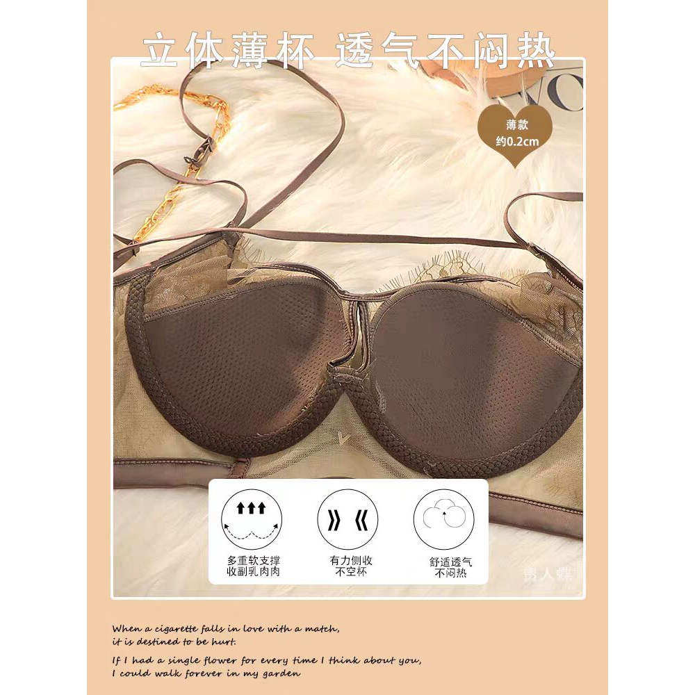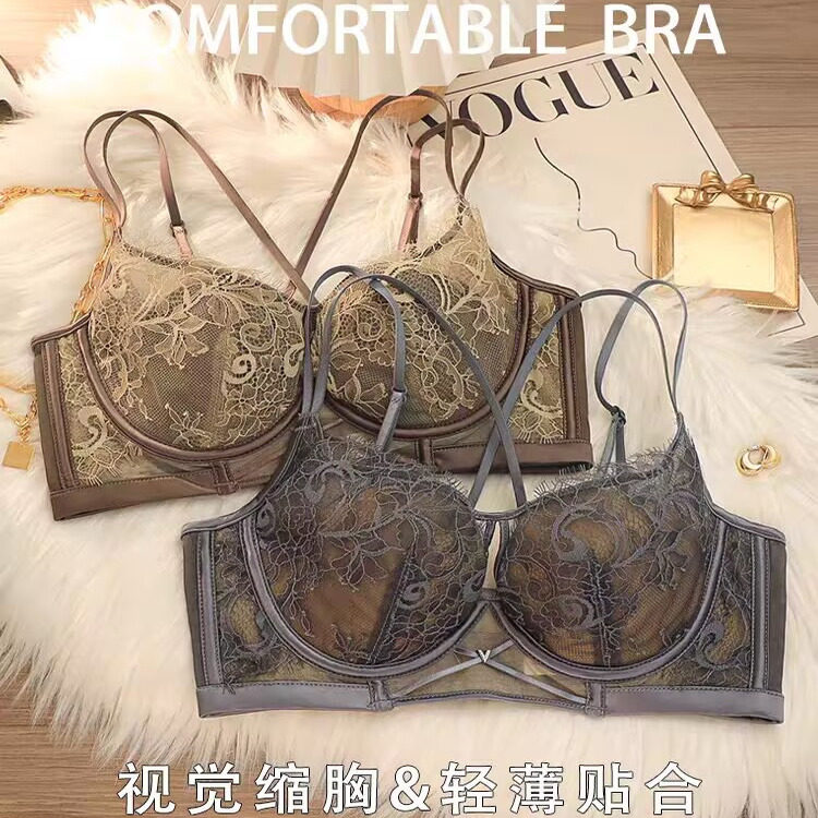 天好奇蜜斯大胸显小胸防下垂内衣女法式超薄性感纯欲蕾丝文胸罩套装