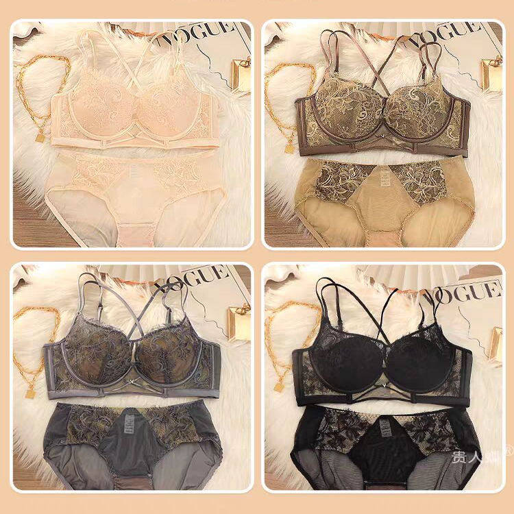好奇蜜斯内衣女小胸聚拢显大蕾丝文胸罩套装无钢圈法式防下垂性感