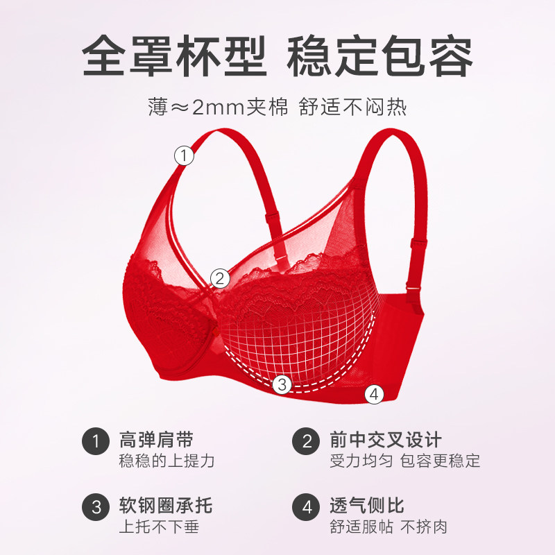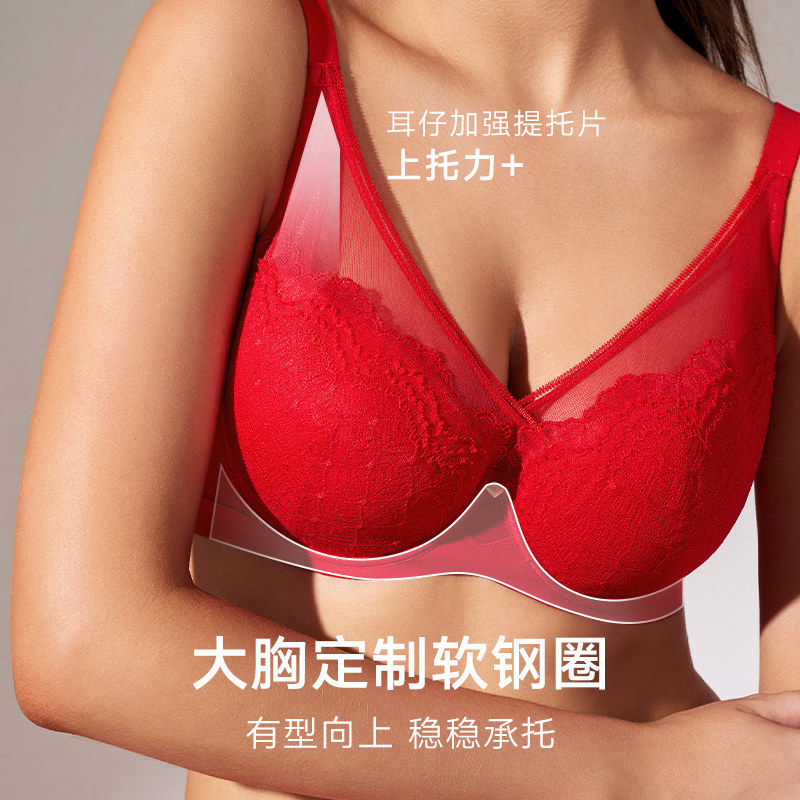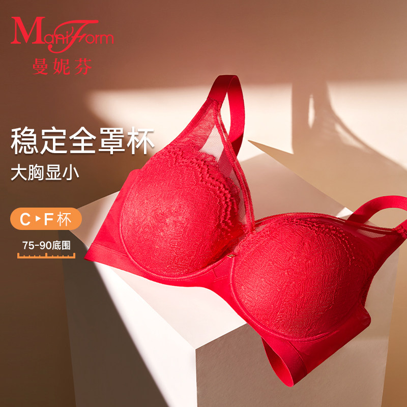 天猫朱珠同款|曼妮芬大胸显小文胸内裤内衣本命年红套装蕾丝女胸罩