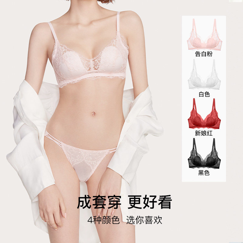 天ubras春日蕾丝法式性感甜辣美背无痕蕾丝轻薄小胸文胸内衣套装女