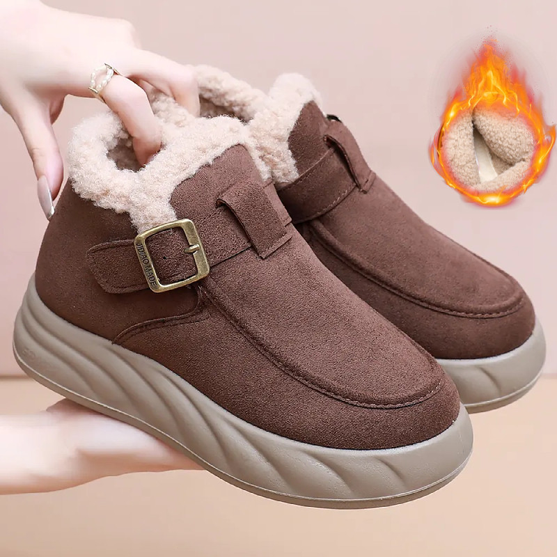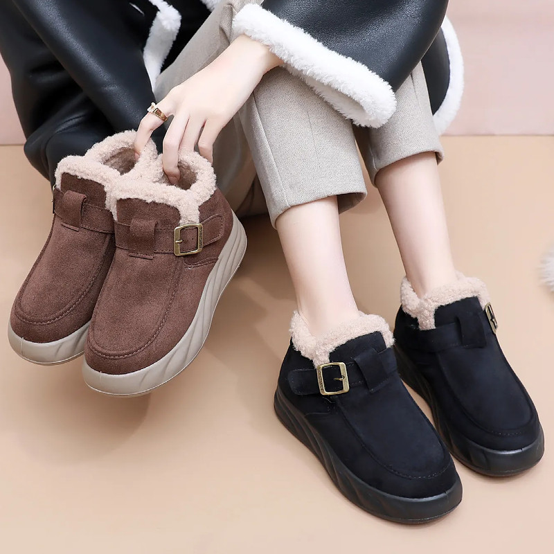 加绒加厚冬季女士棉鞋妈妈鞋外穿平底防滑轻便豆豆鞋保暖舒适轻便