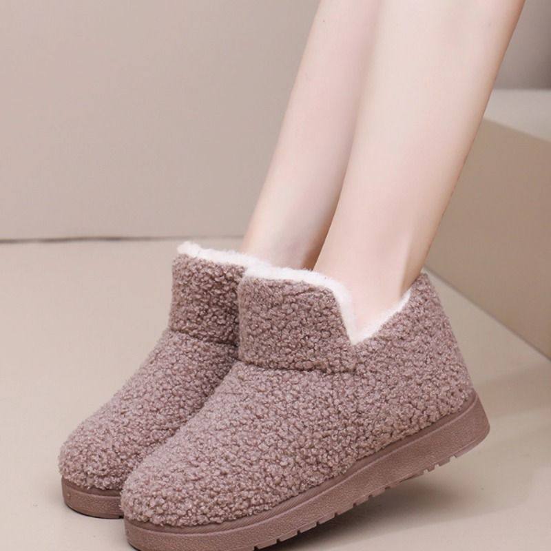 加绒加厚冬季女士棉鞋妈妈鞋外穿平底防滑轻便豆豆鞋保暖舒适轻便