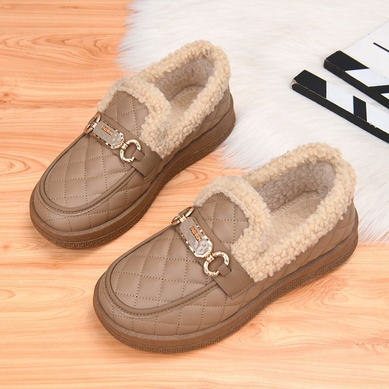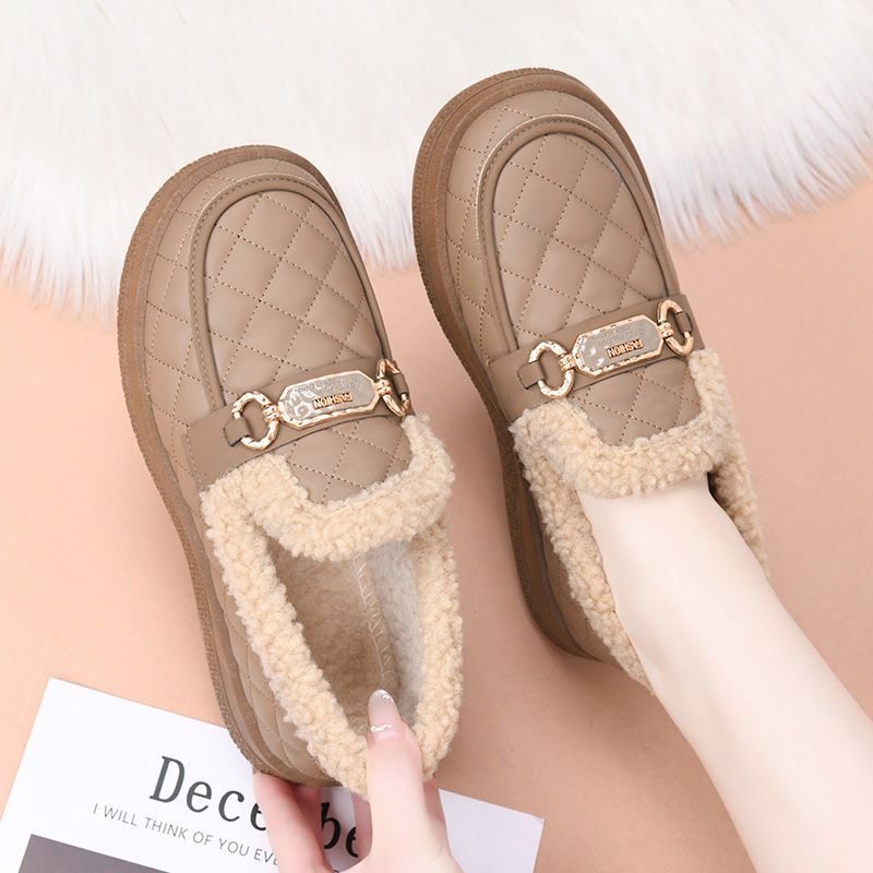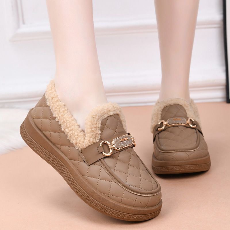 加绒加厚冬季女士棉鞋妈妈鞋外穿平底防滑轻便豆豆鞋保暖舒适轻便