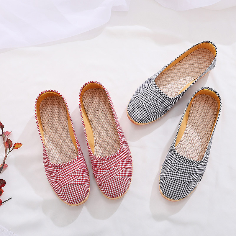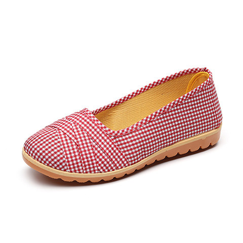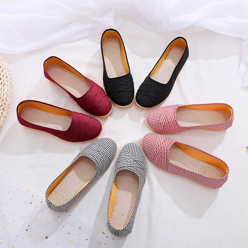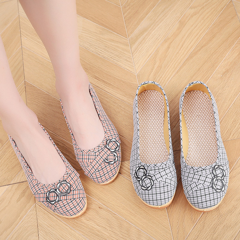 淘宝老北京布鞋女妈妈鞋纯色格子牛筋底浅口鞋平底单鞋休闲舒适奶奶鞋